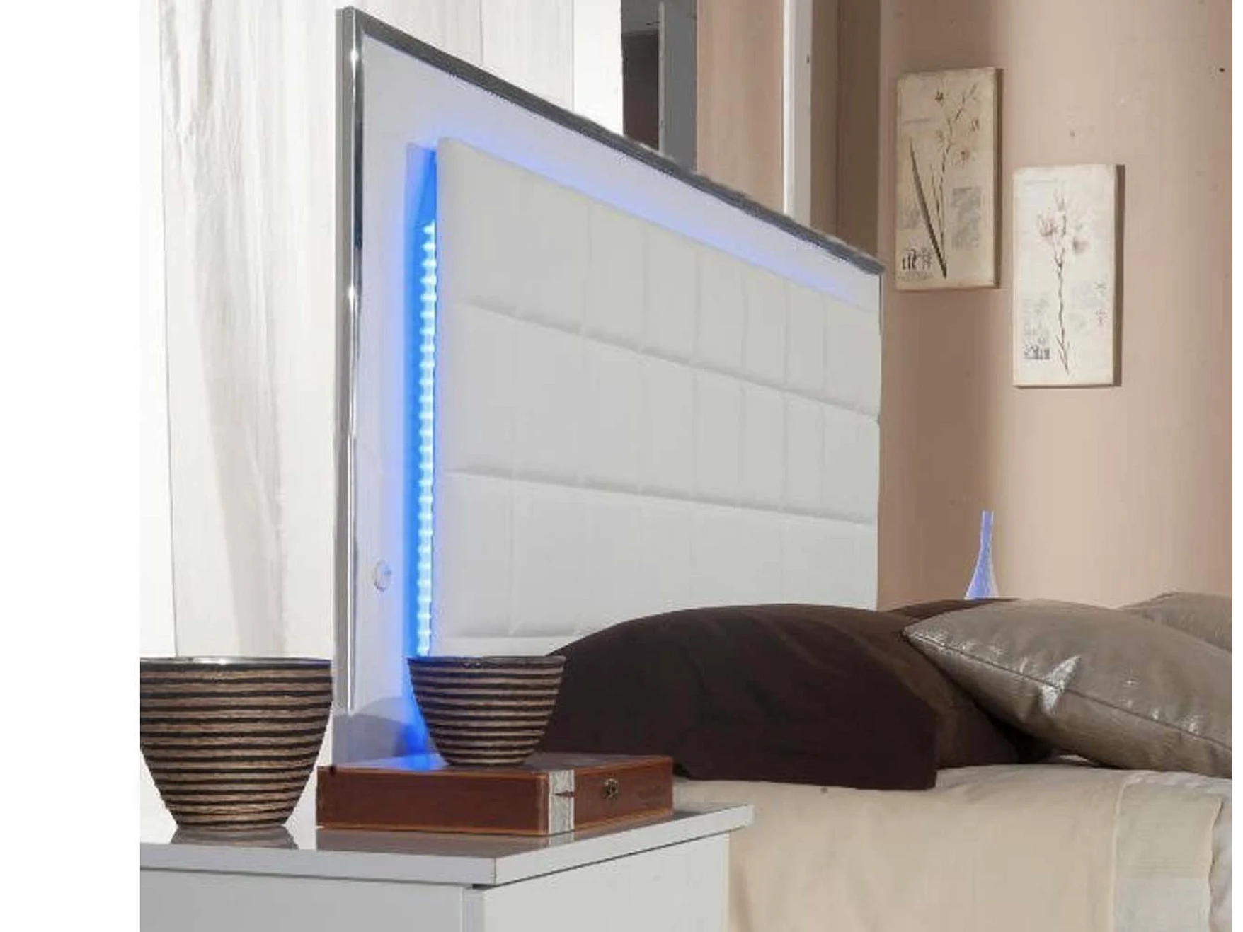 Lit design noir laqué et tête de lit capitonnée simili cuir noir avec Led Turin-160x200