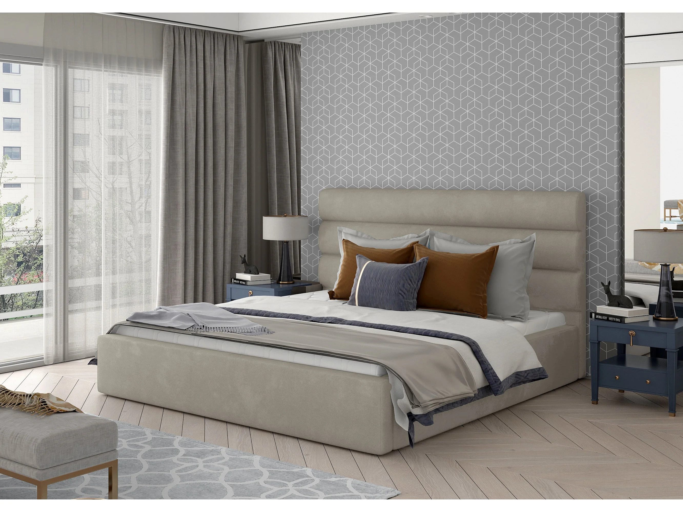 Lit design velours beige Klarina - 4 tailles-140x200