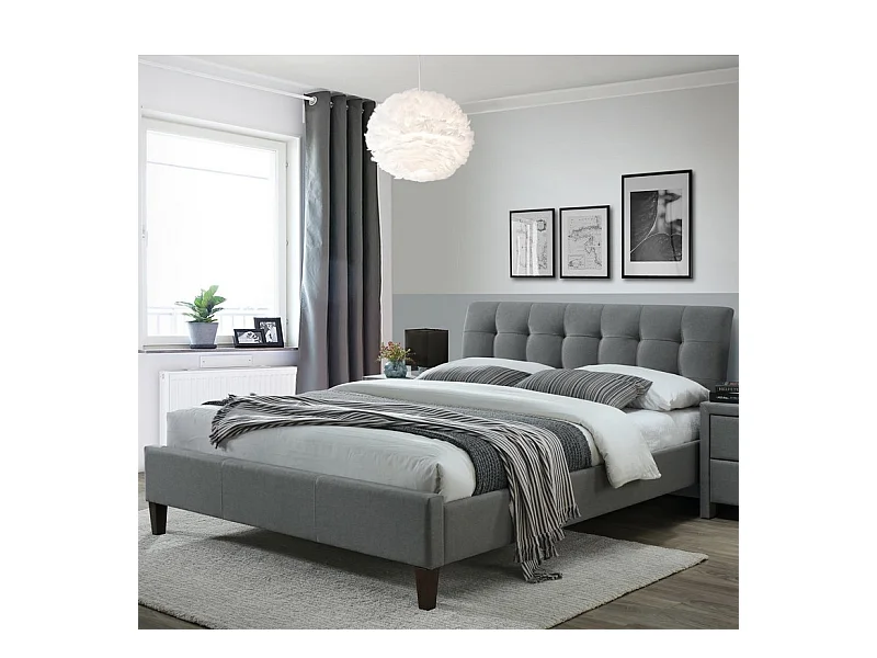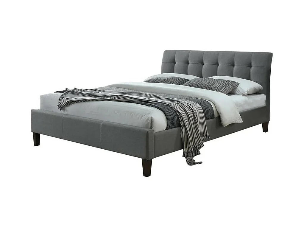 Lit deux personnes 160 x 200 cm en tissu gris avec pieds noirs en bois YUNA 2