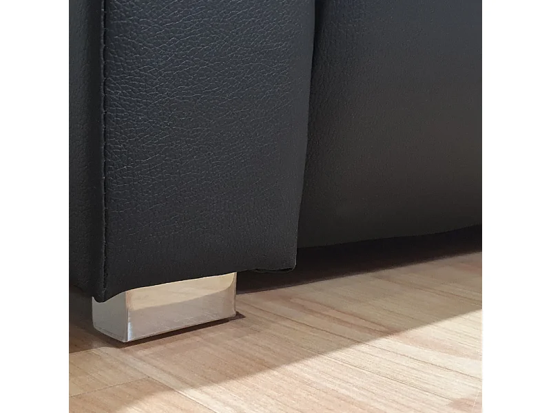 Lit double 140 x 190 cm en simili noir et métal + sommier fixe - EDEN