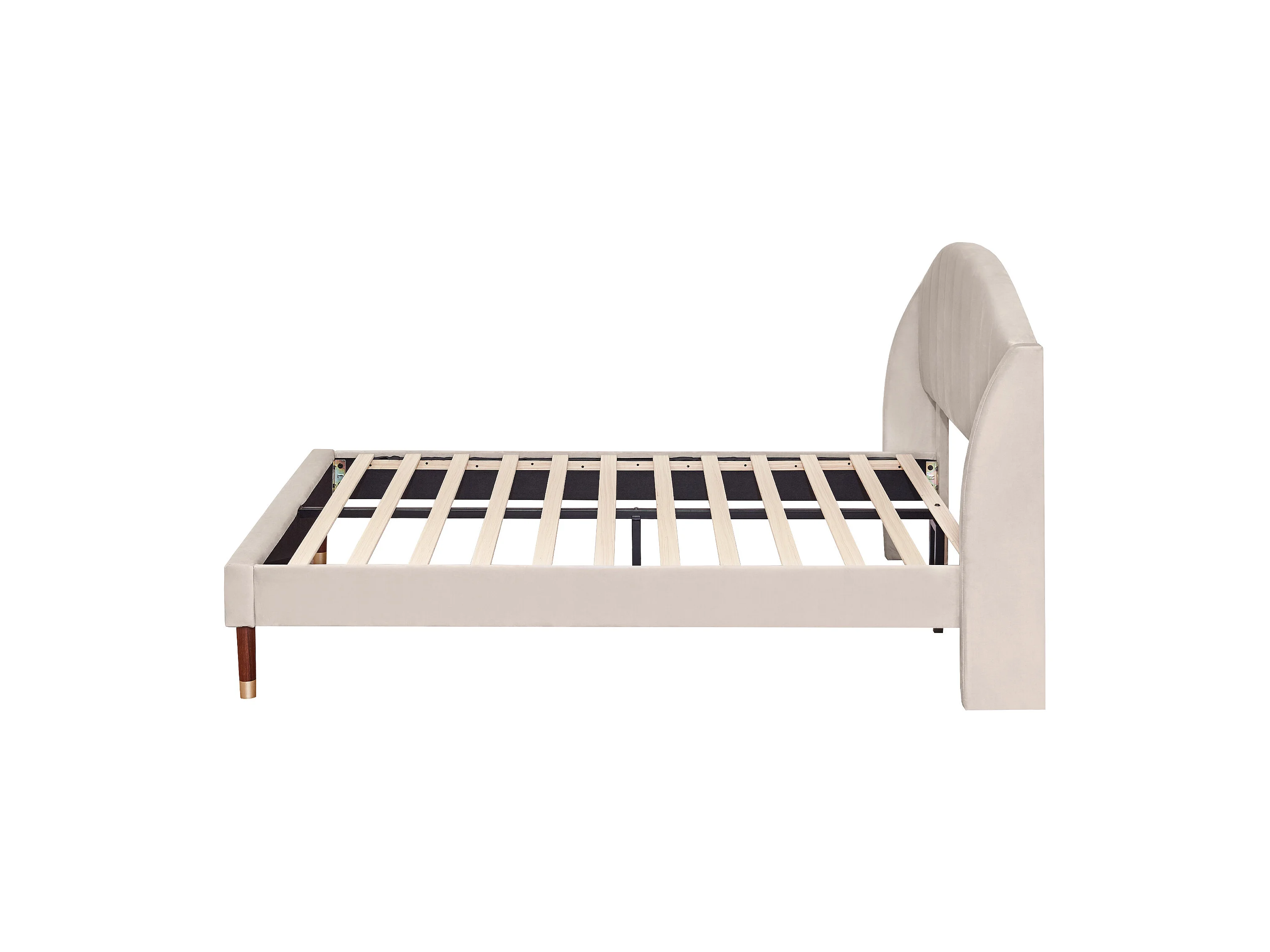Lit adulte 140x190 cm en velours beige avec tête de lit, sommier à lattes en bois(sans matelas)