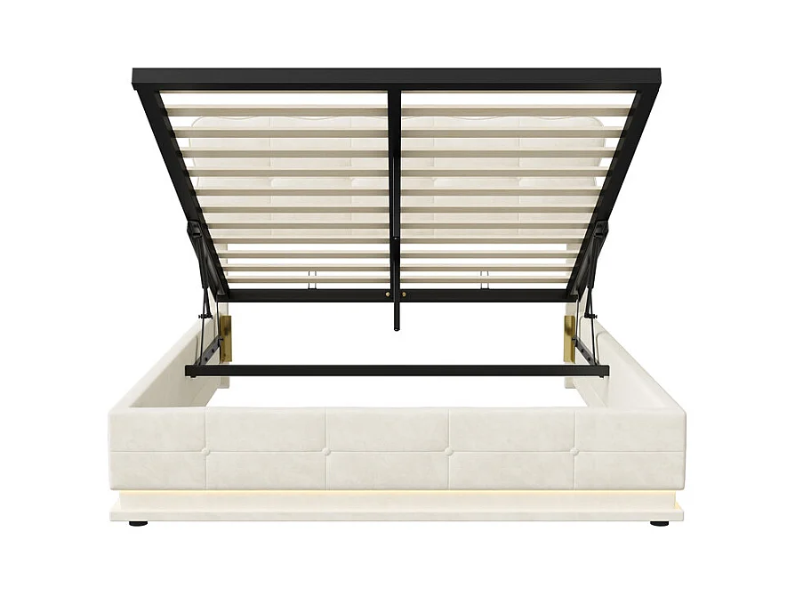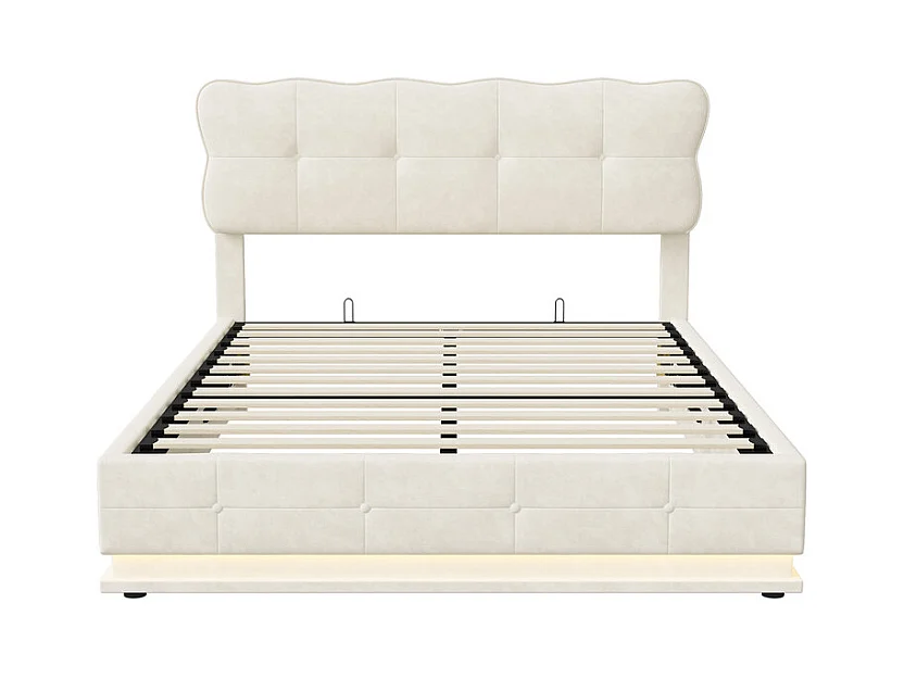 Lit Double 140x190 cm Lit Coffre Hydraulique avec Rangement, LED RGB Télécommande, Tête de Lit Velours Blanc Moderne