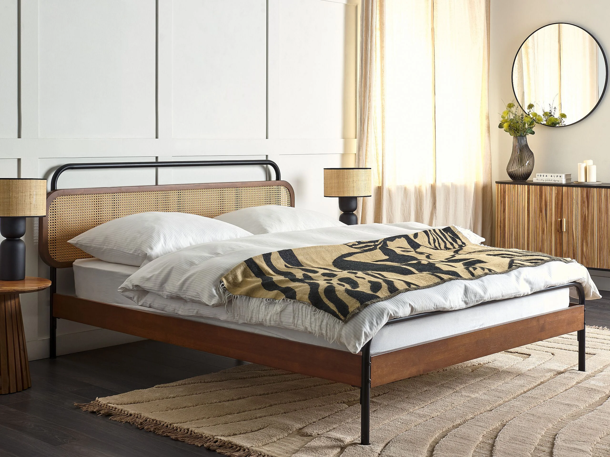 Lit avec sommier Rotin BOUSSICOURT 160 x 200 cm Marron foncé