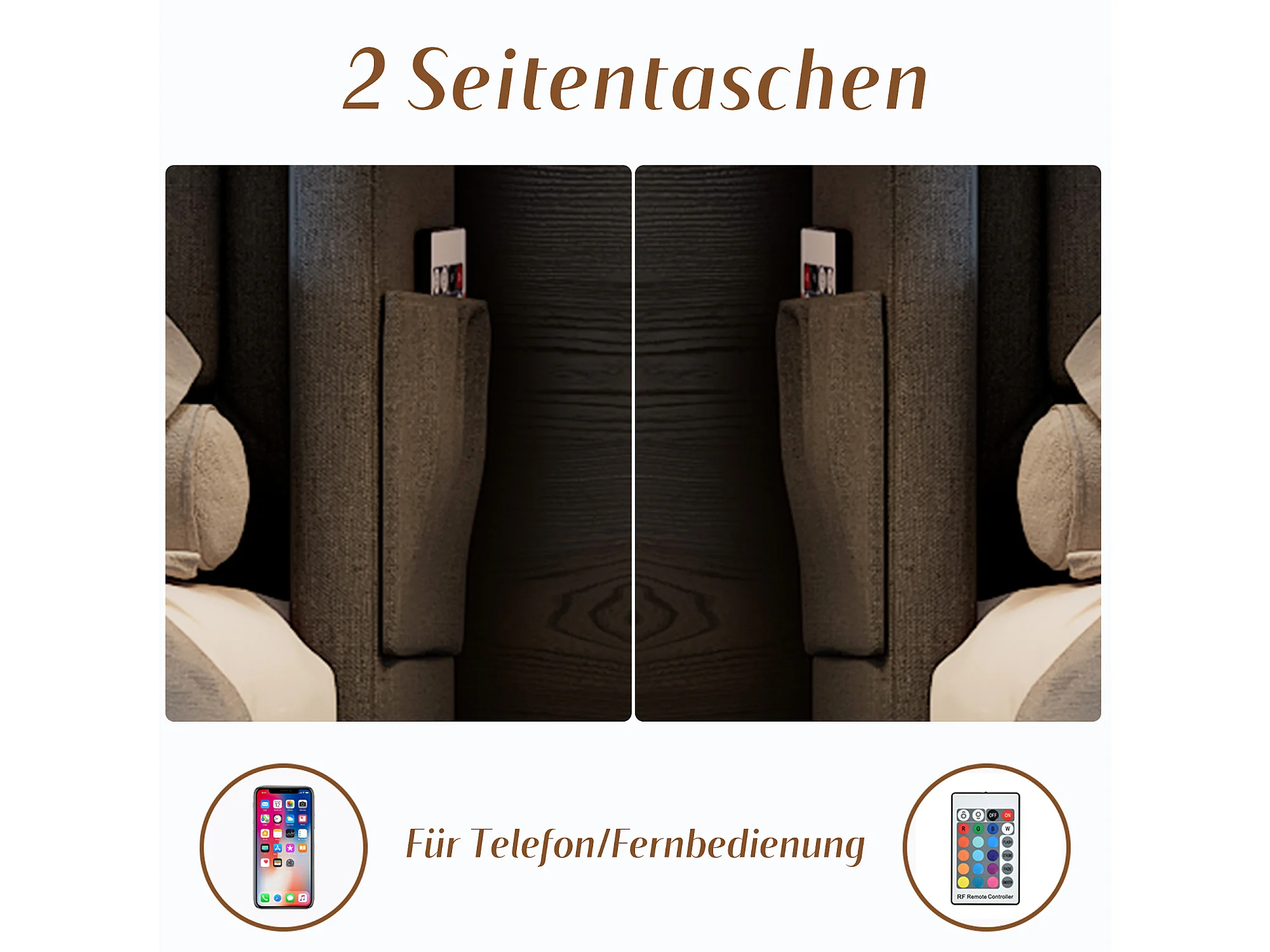 Lit double 160x200 avec tête de lit LED et port USB-C, avec 4 tiroirs de rangement, sommier en bois et métal, gris, (220x168x106 cm)