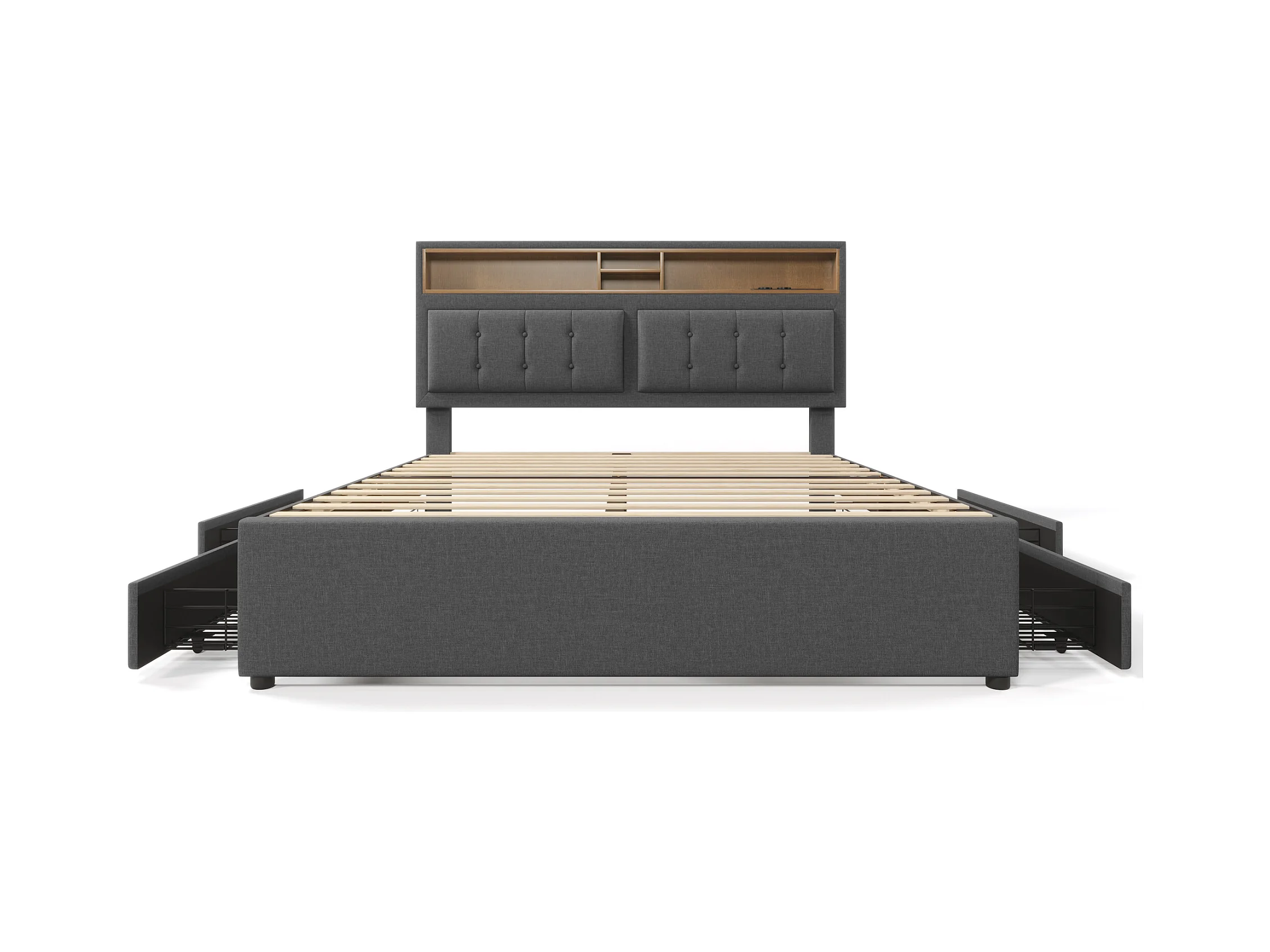 Lit adulte 160x200 cm avec 4 tiroirs et USB-C - tête de lit réglable(sans matelas)
