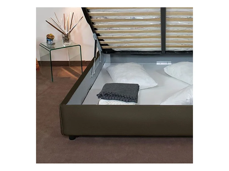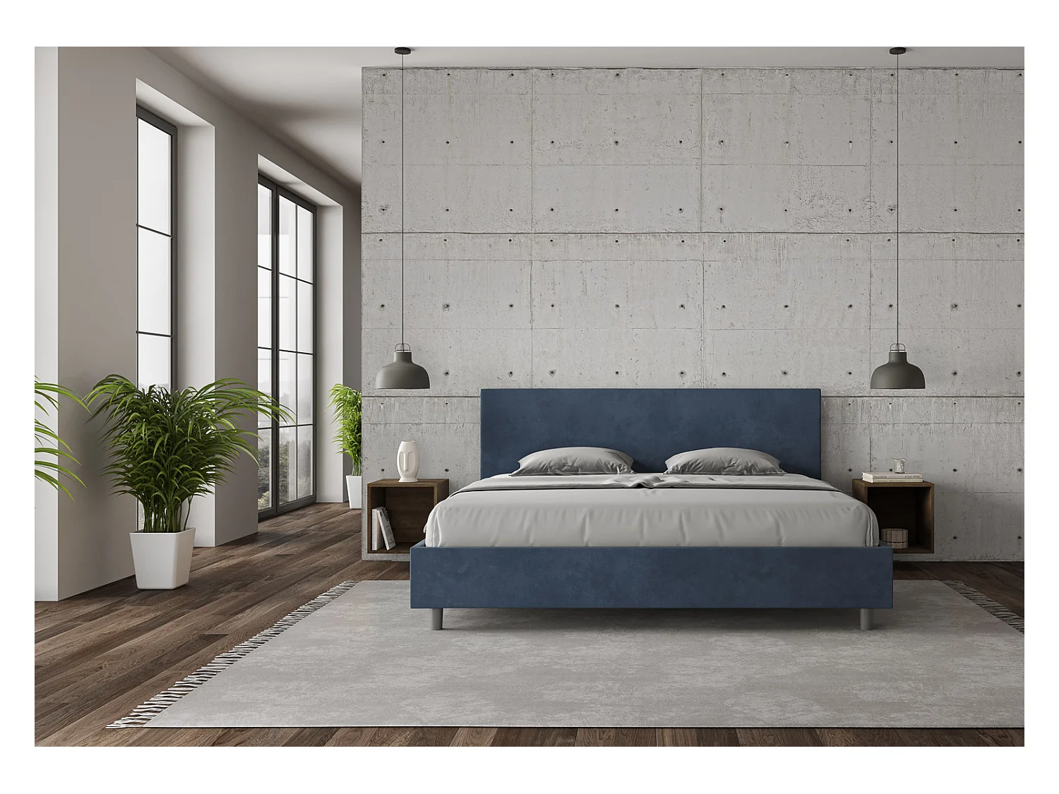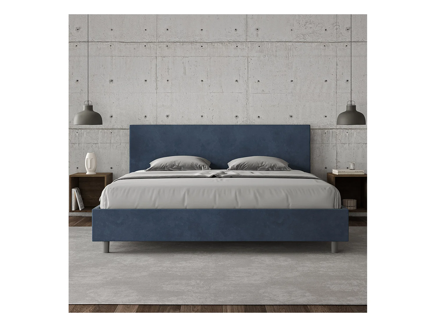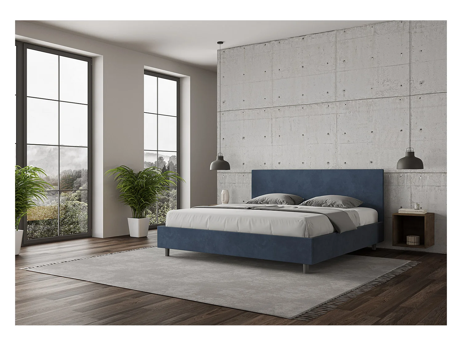 Lit adulte moderne microfibre Adelyne-Couleur Bleu foncé-180x200-Option Avec coffre