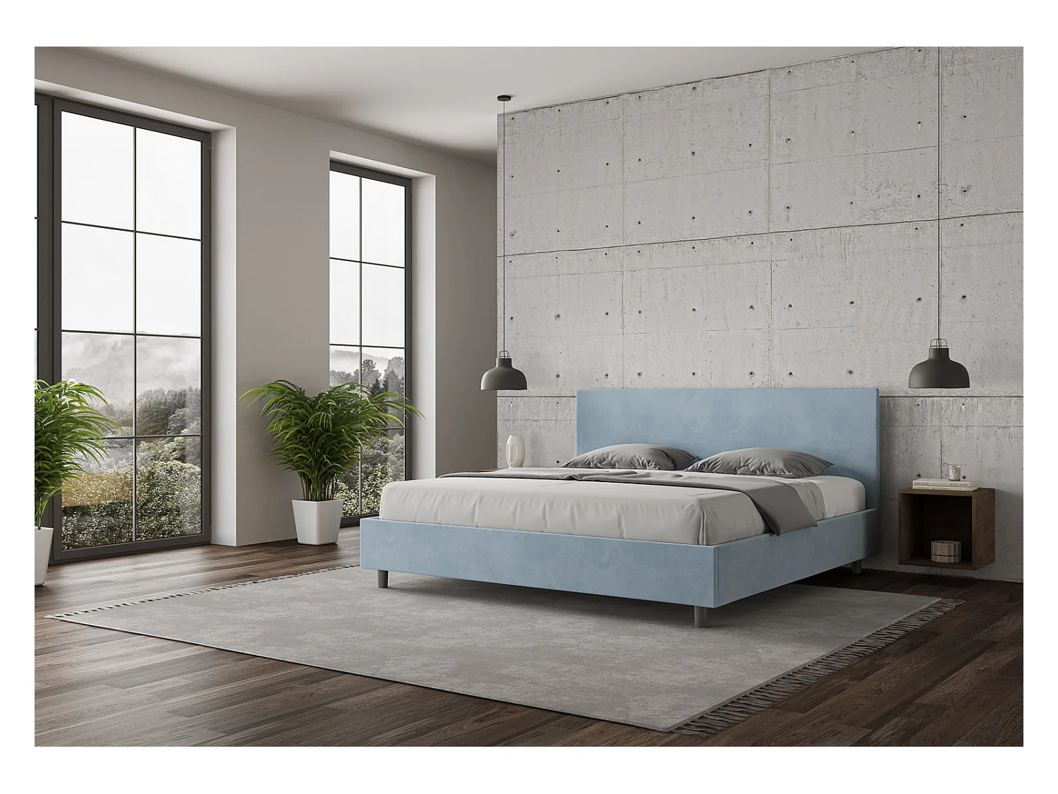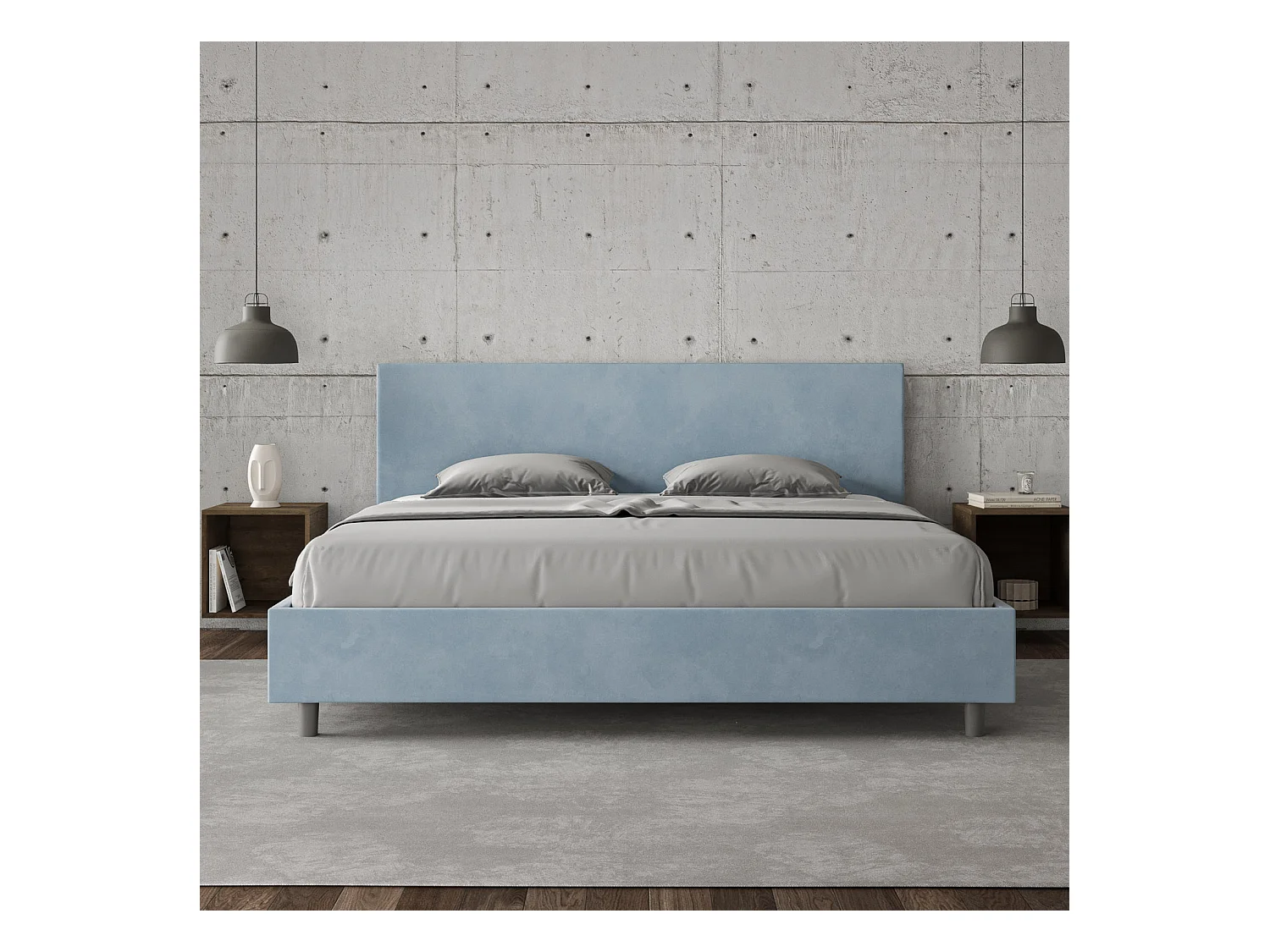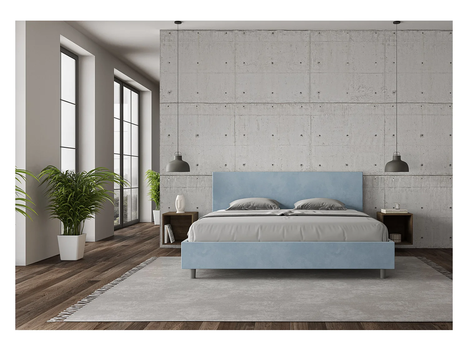 Lit adulte moderne microfibre Adelyne-Couleur Bleu clair-180x200-Option Avec coffre