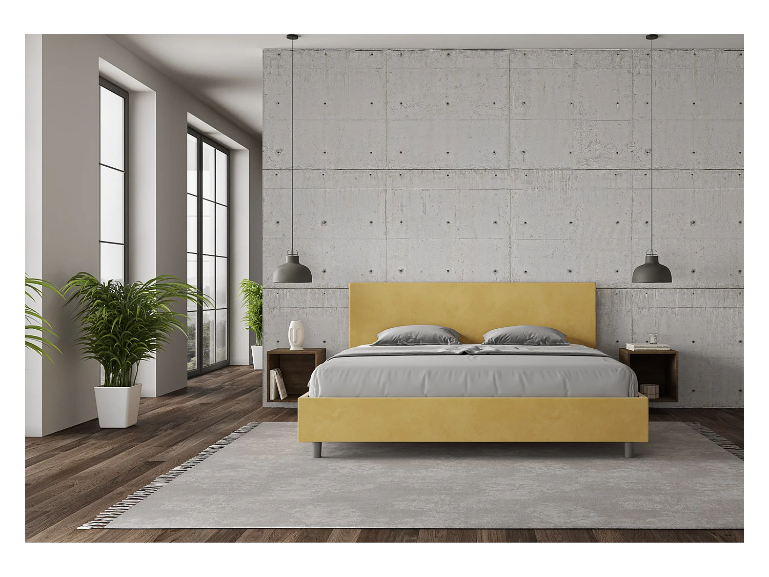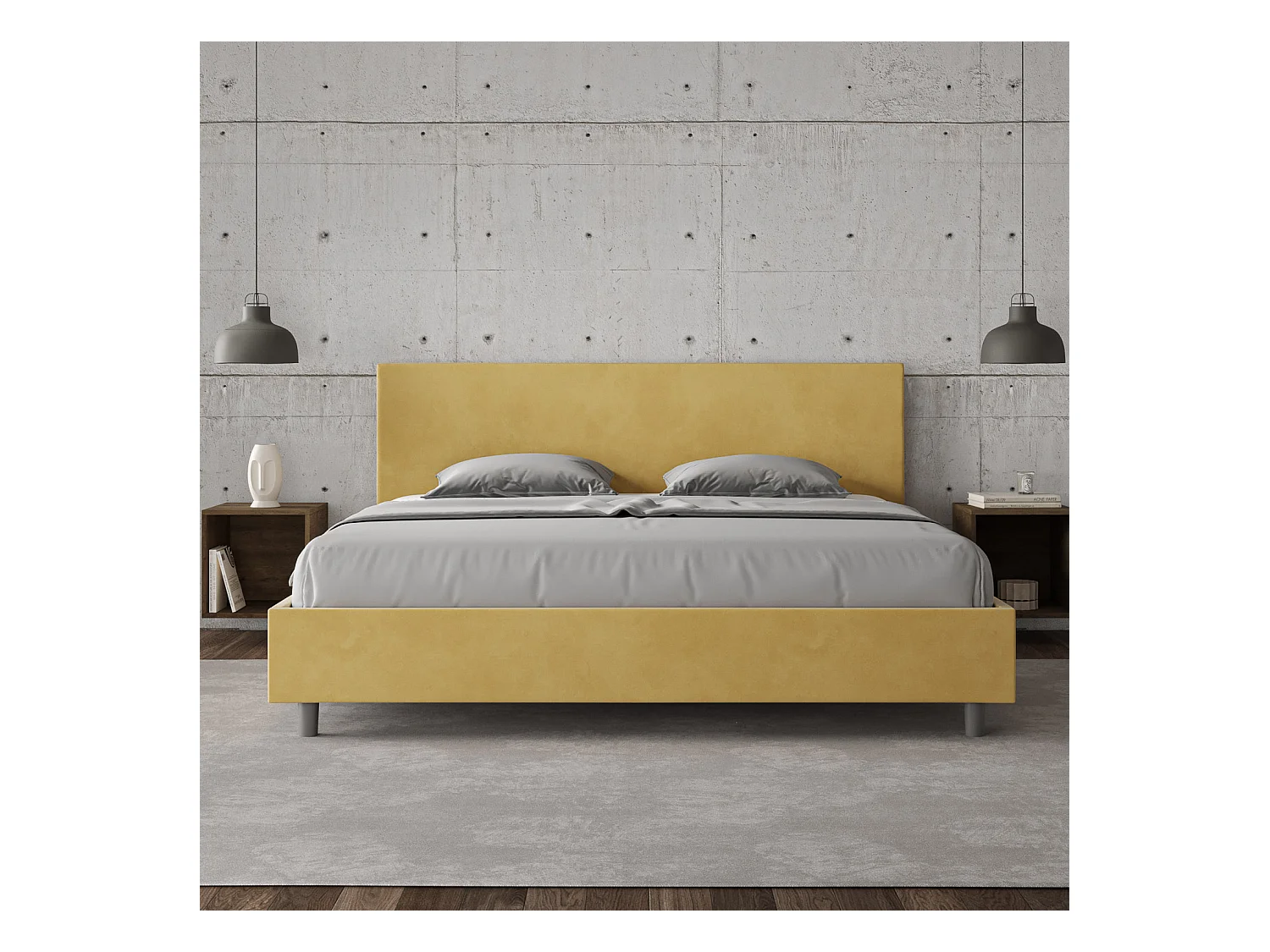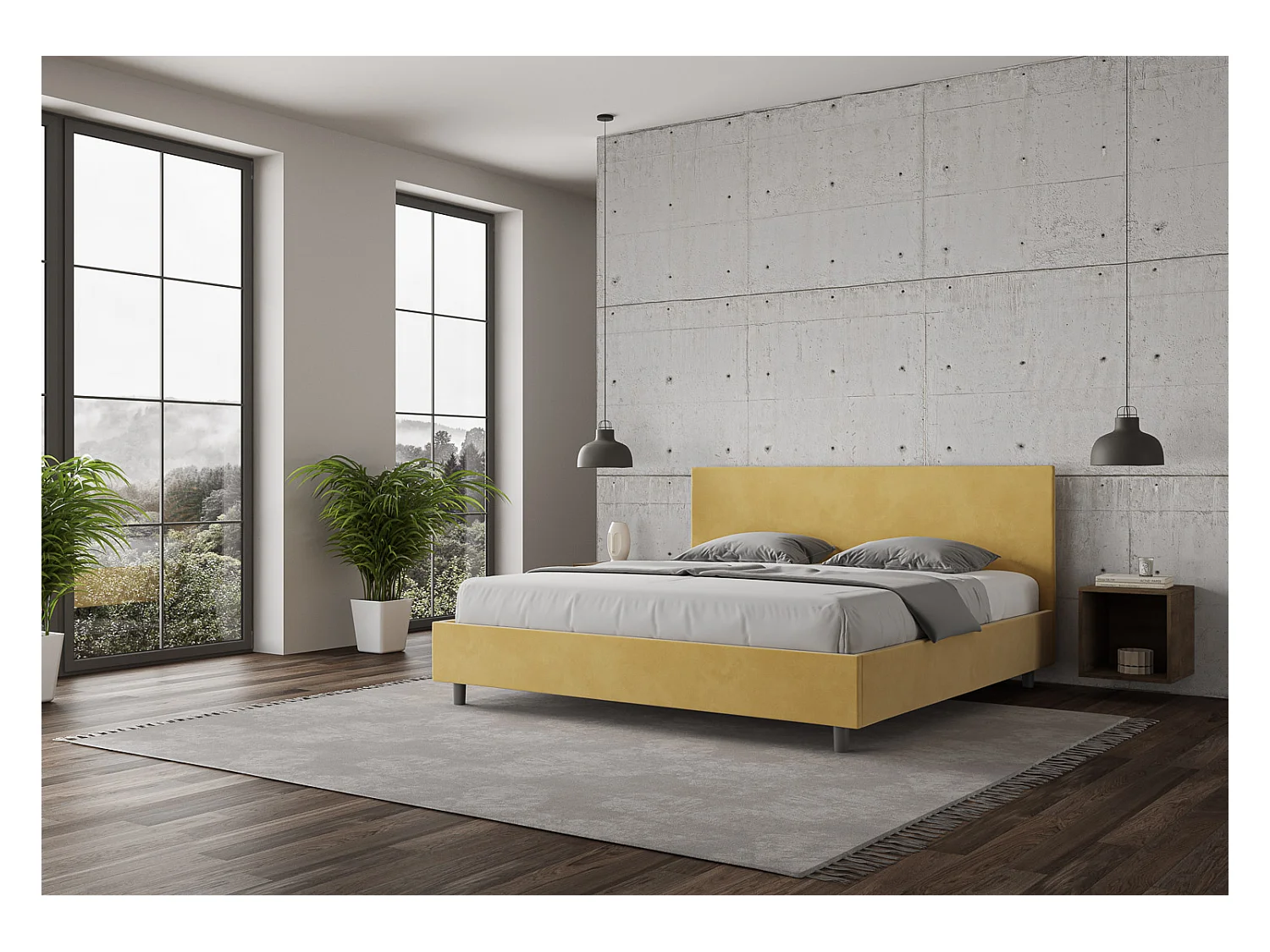 Lit adulte moderne microfibre Adelyne-Couleur Jaune curry-180x200-Option Avec sommier