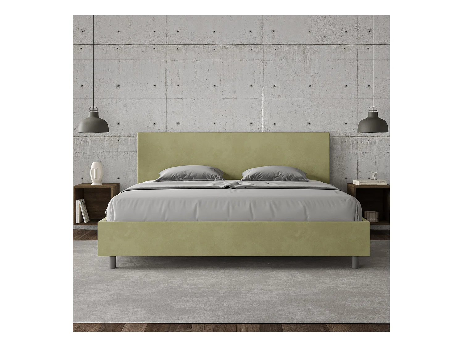 Lit adulte moderne microfibre Adelyne-Couleur Vert kaki-200x200-Option Avec coffre