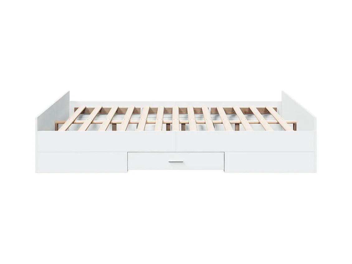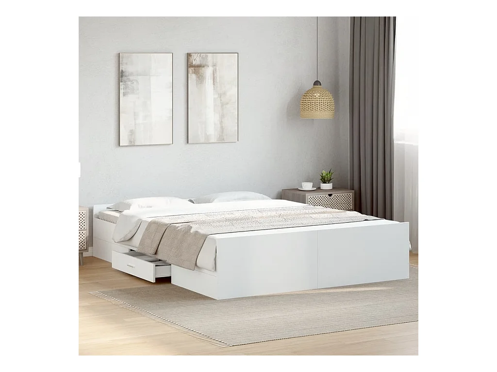 Lit double à tiroirs blanc 160x200cm bois d'ingénierie FR97502