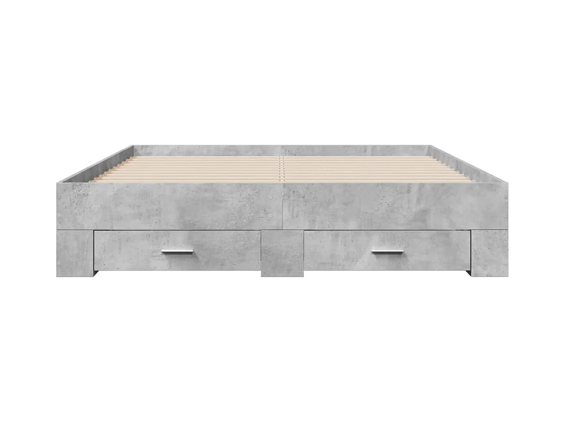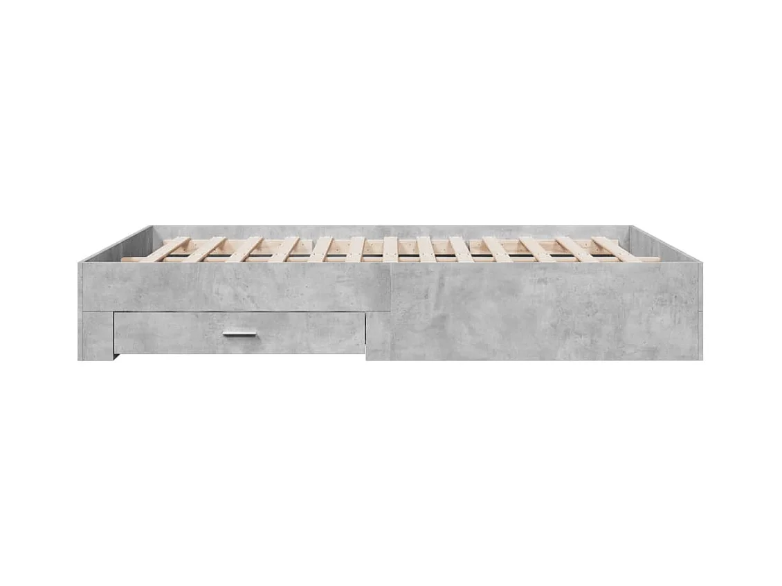 Lit double à tiroirs gris béton 150x200 cm bois d'ingénierie FR18957