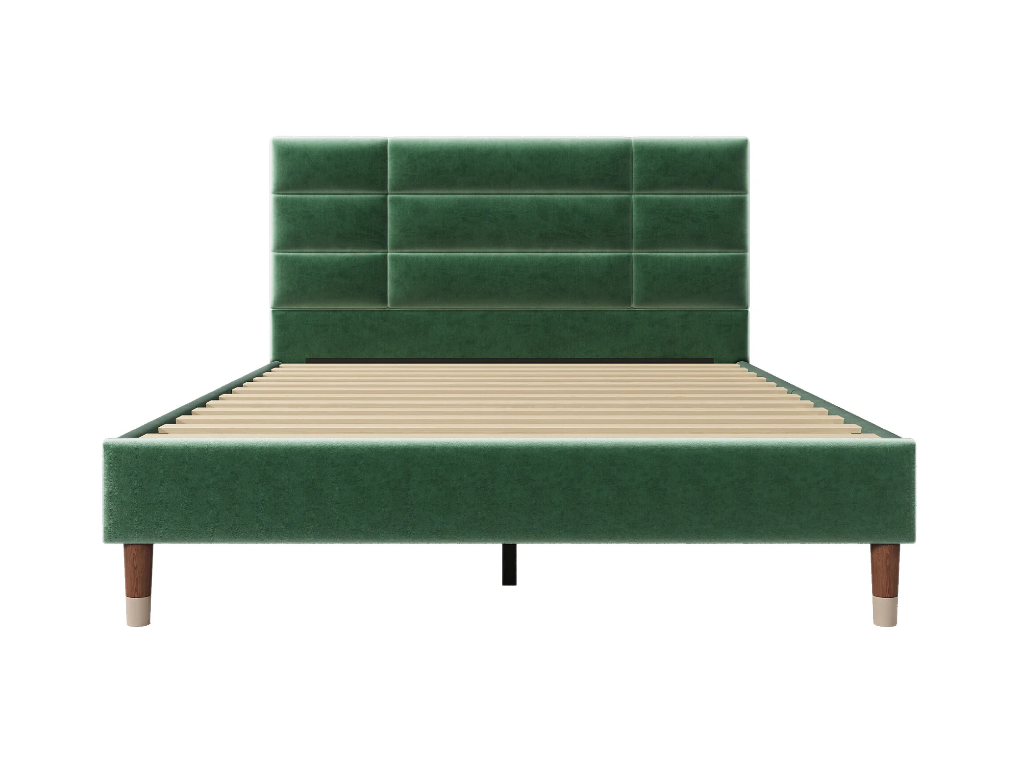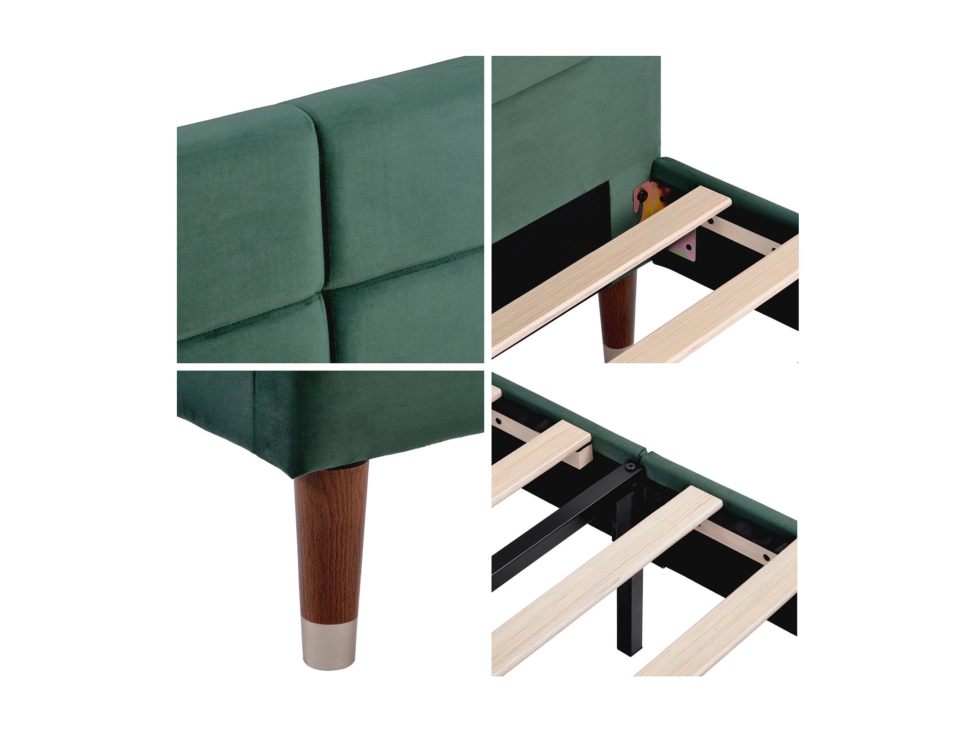 Lit double 140x200cm avec sommier - tête de lit capitonnée - cadre de lit en bois - velours vert (sans matelas)