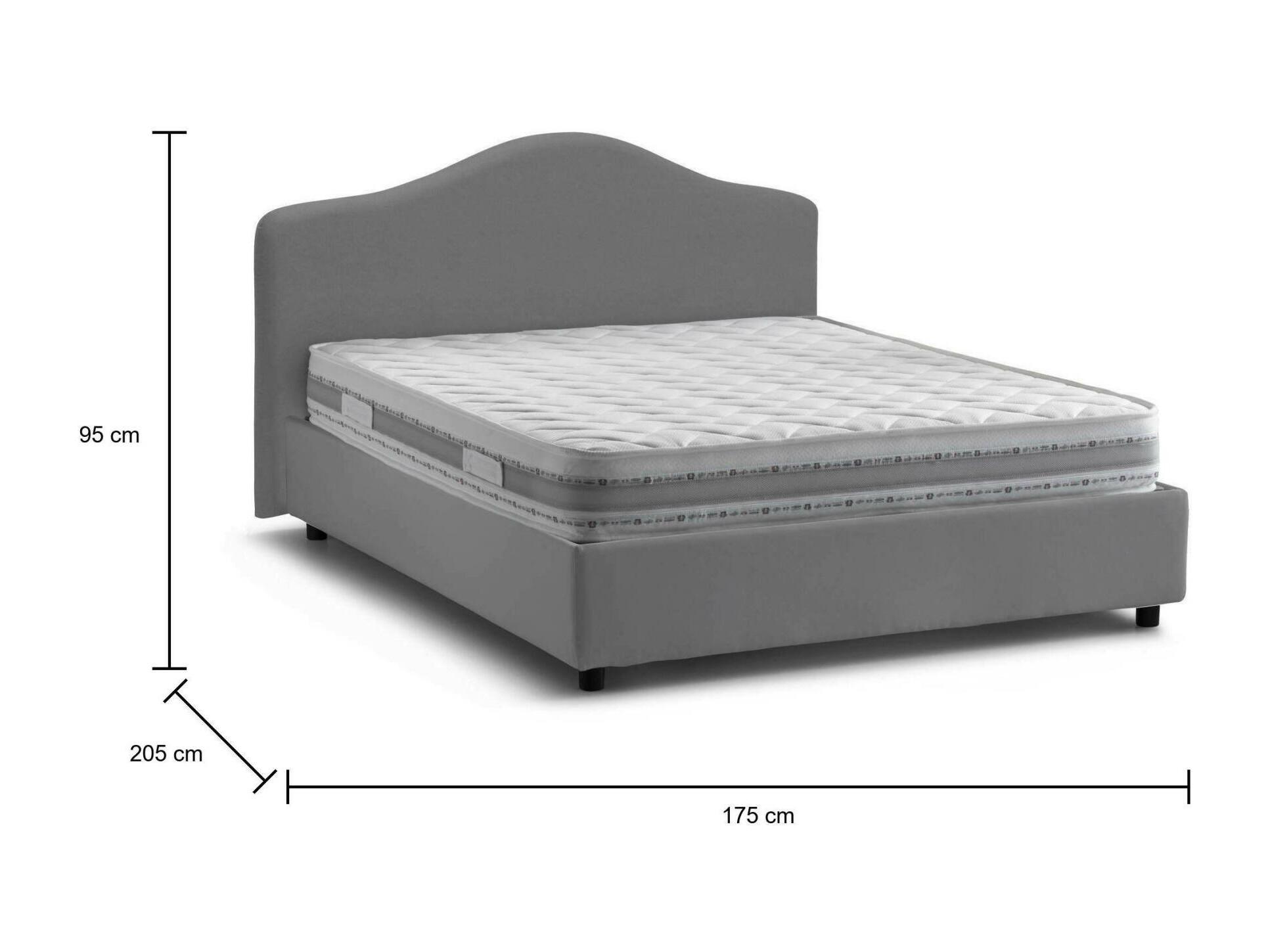 Lit double Annunziata, Lit coffre avec revêtement en tissu, 100% Made in Italy, Ouverture frontale, avec matelas 160x190 cm inclus, Gris