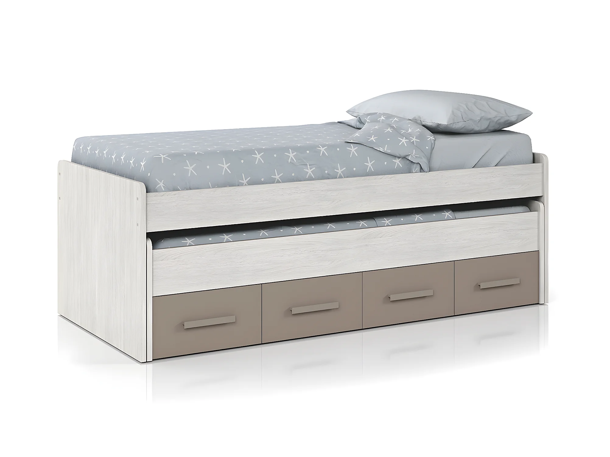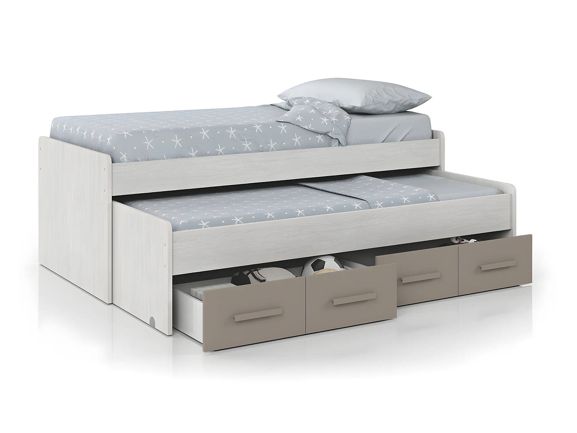 Lit double avec 2 tiroirs coloris Blanc Alpes / Basalte en mélamine - Dim : 69 x 198 x 96 cm
