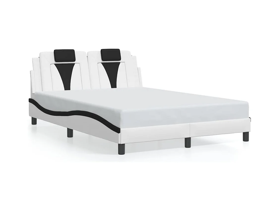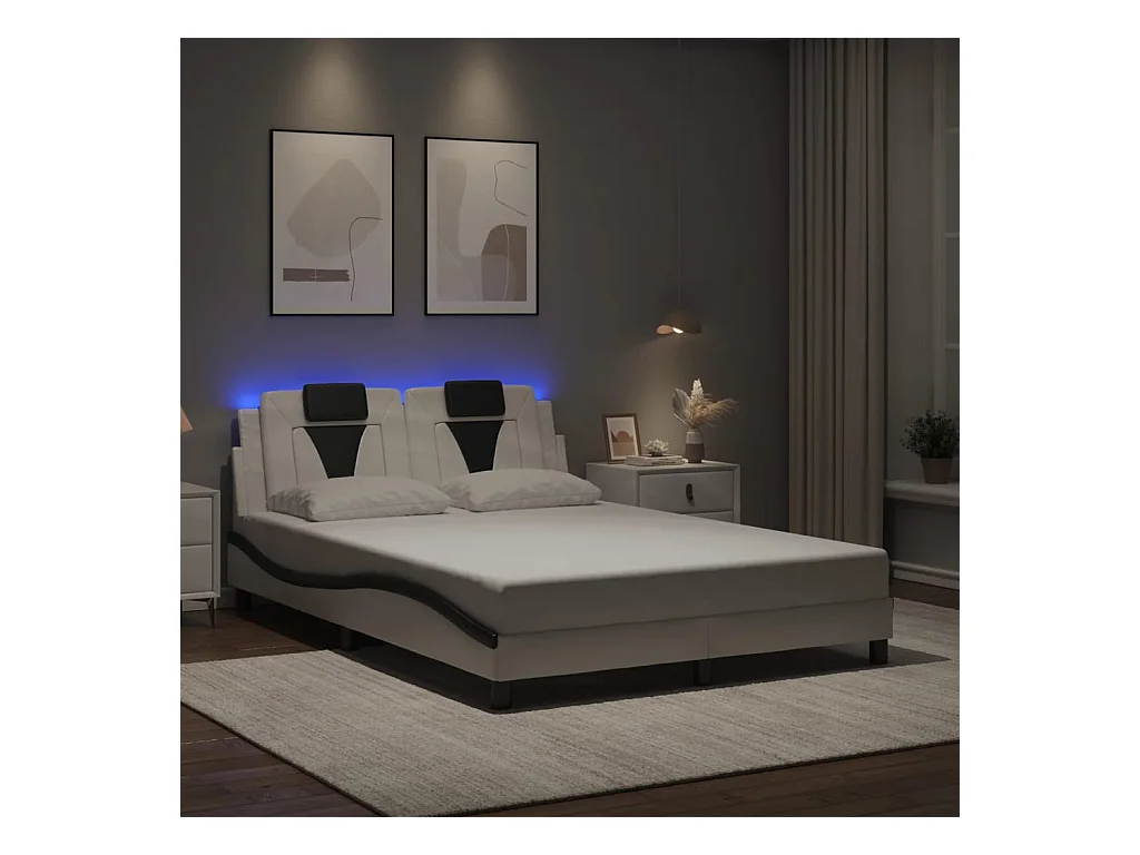 Lit double avec lumières LED blanc noir 140x200 cm similicuir FR48041