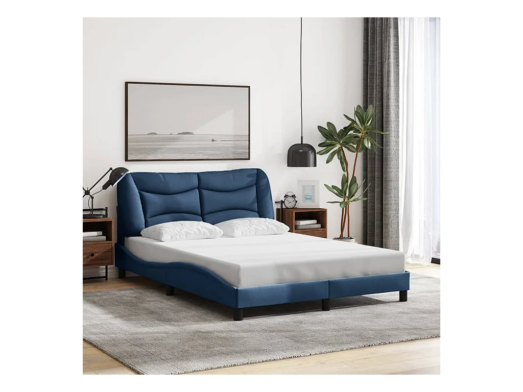 Lit double avec lumières LED bleu 140x190 cm tissu FR65034