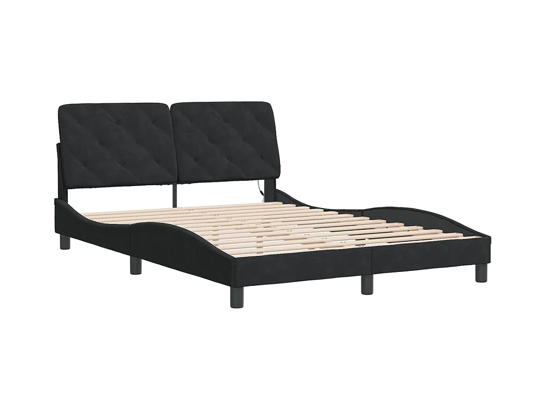 Lit double avec lumières LED noir 140x190 cm velours FR27000