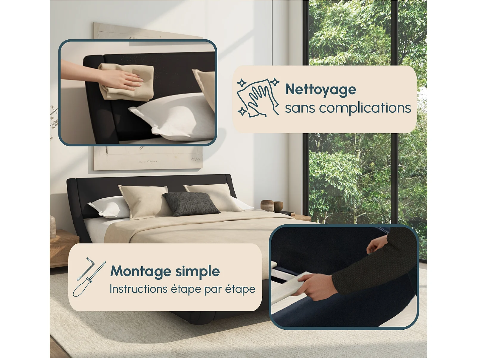 Lit double avec Matelas 180x200cm en Noir Alessia