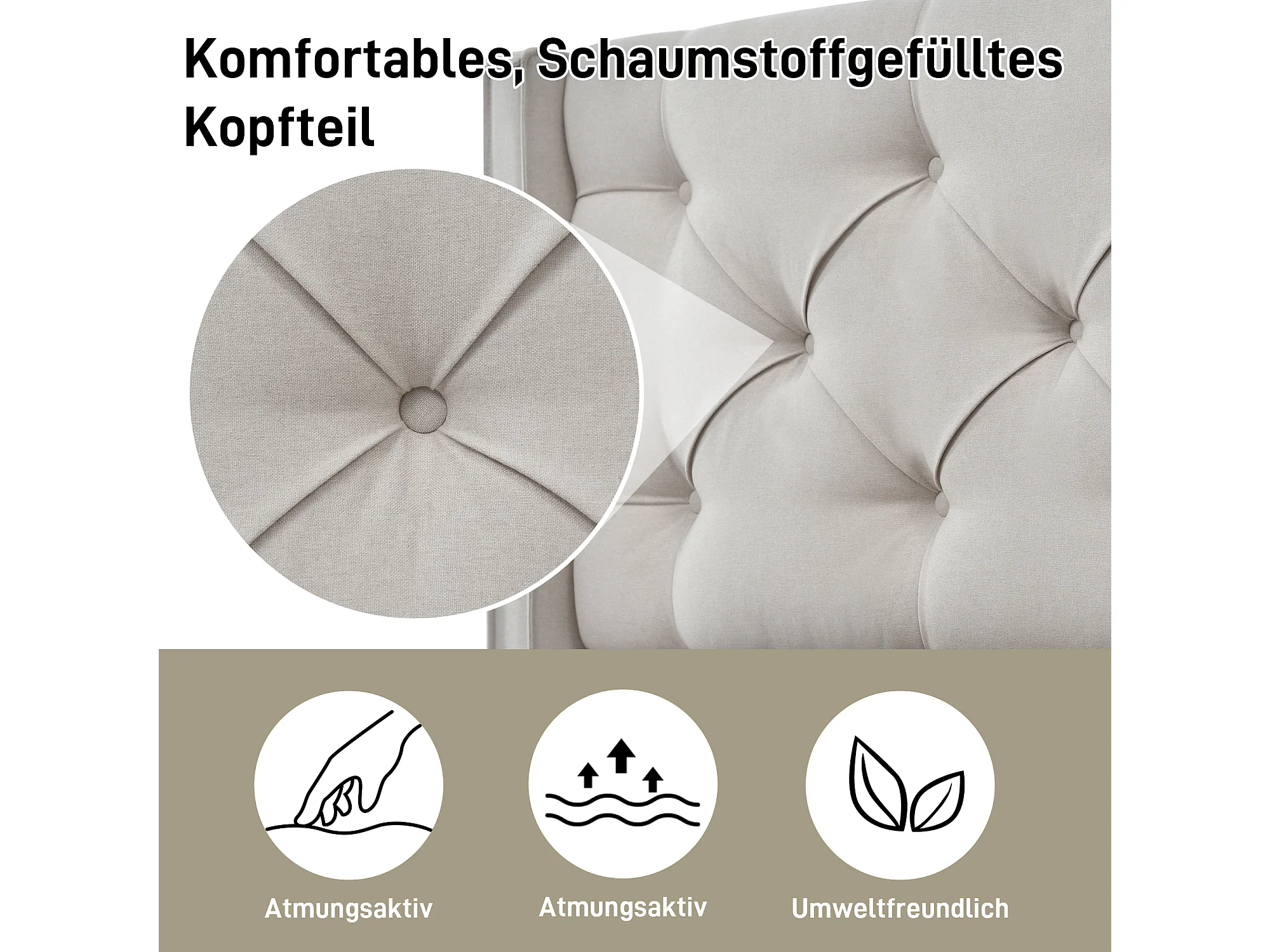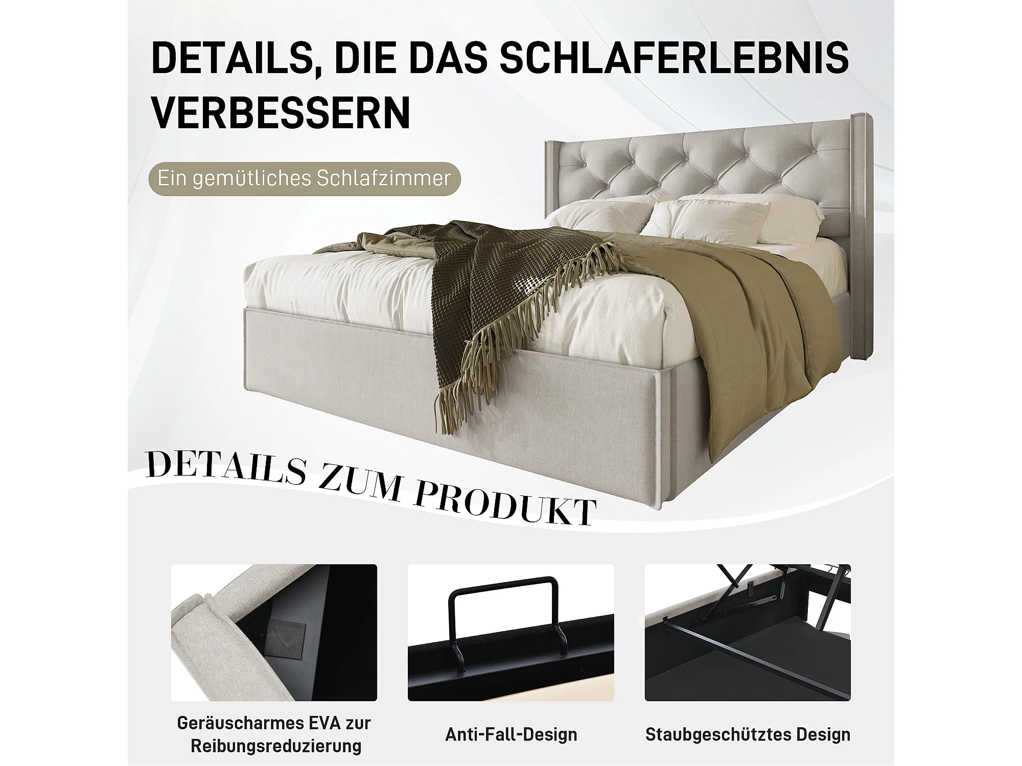 Lit double avec rangement hydraulique, cadre moderne en coton gris clair (140x151x110cm)