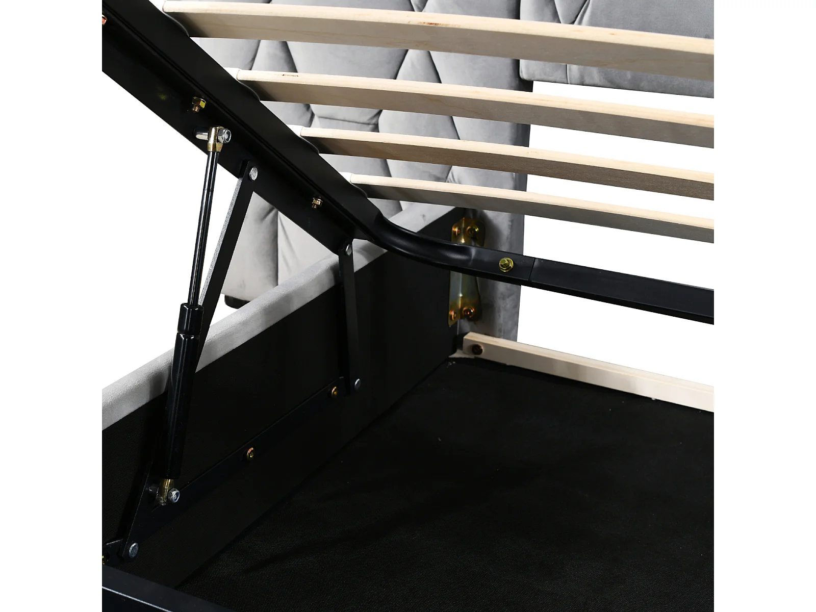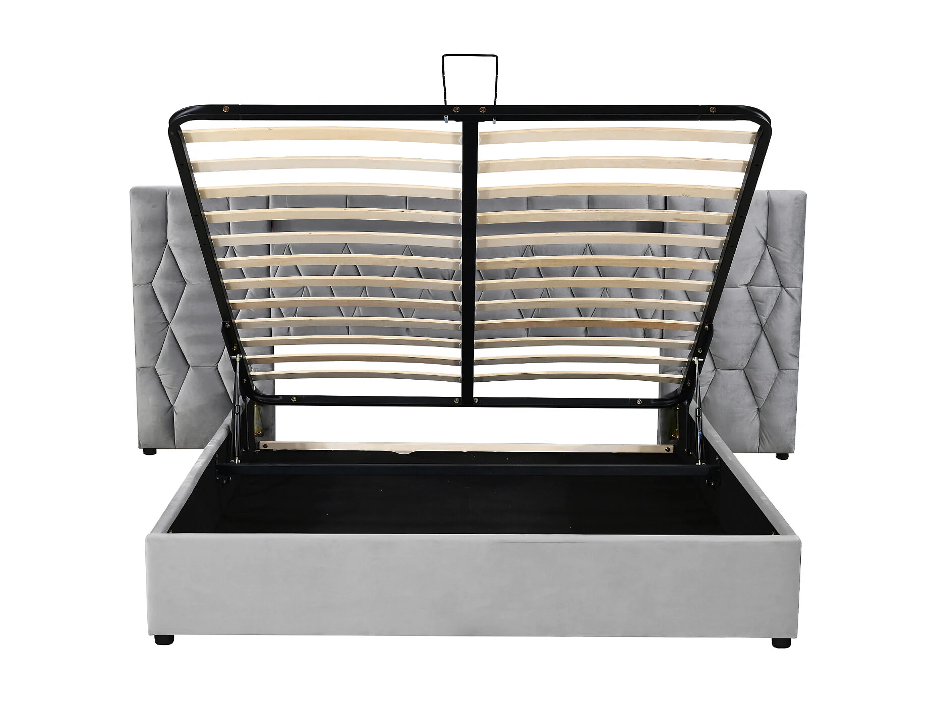 Lit Double avec Rangement, Sommier 160x200 cm Lit, avec LED et USB, Lit Adulte, Grand Dossier, Gris
