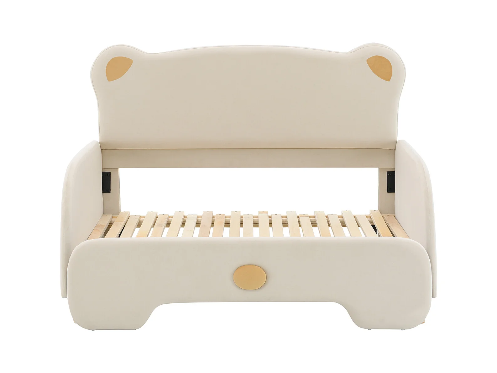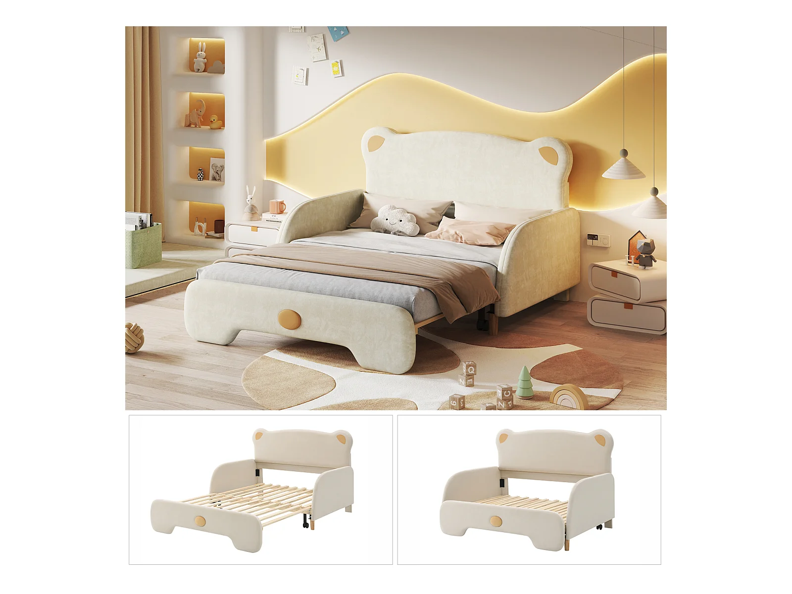 Lit double Bear, rembourré, pour enfant, divan, gigogne, bords doux, velours, beige, 140x110/200cm