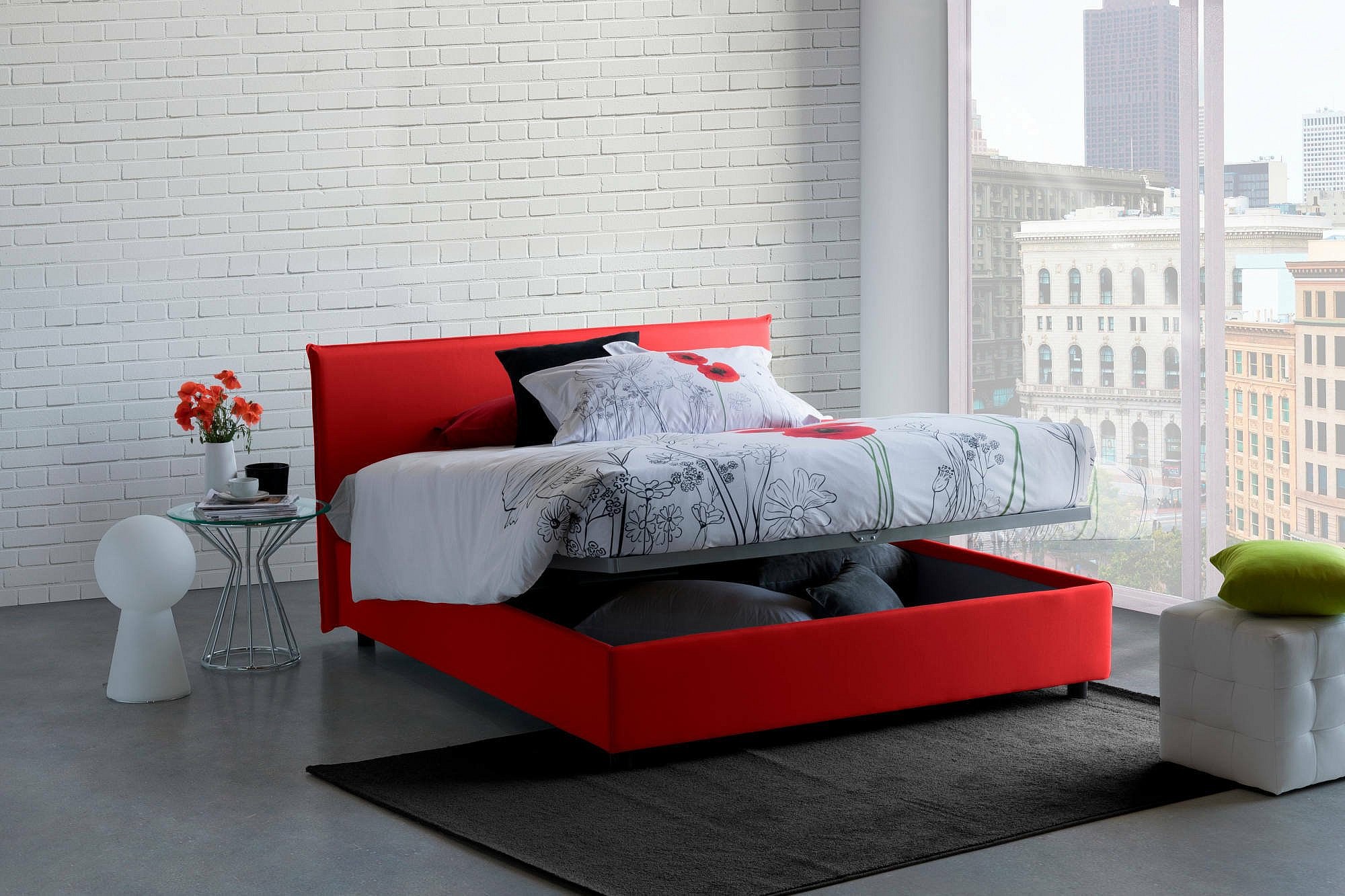 Lit double Bibiana, Lit coffre avec revêtement en tissu, 100% Made in Italy, Ouverture frontale, avec matelas 160x190 cm inclus, Rouge