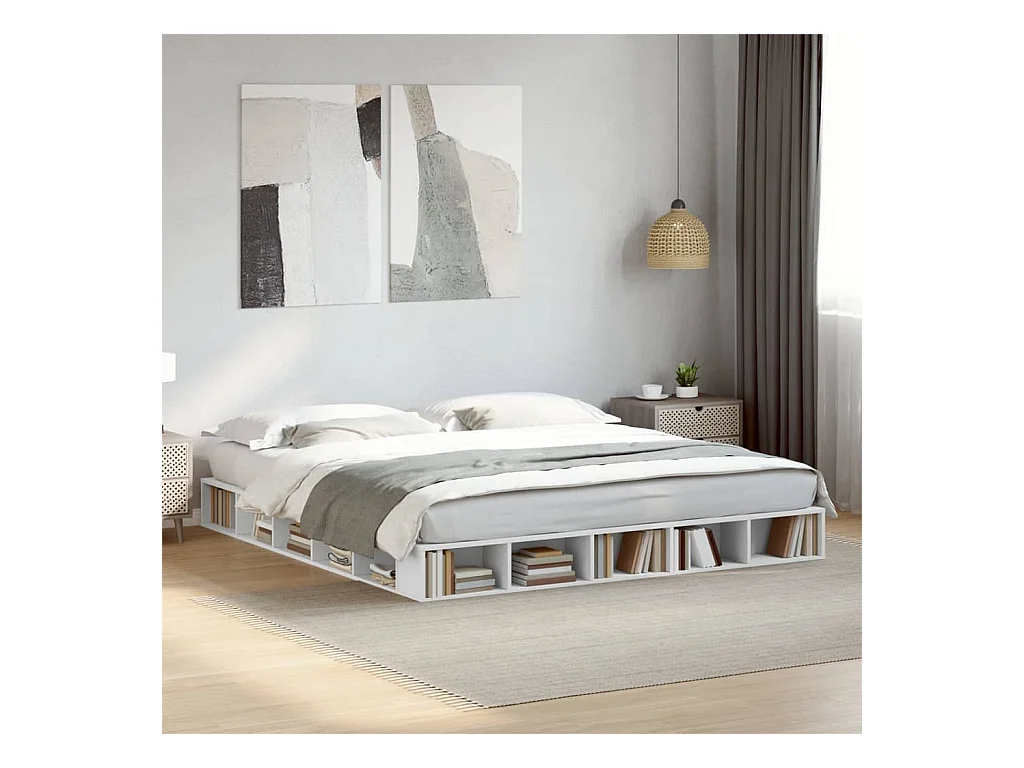 Lit double blanc 180x200 cm bois d'ingénierie FR26309