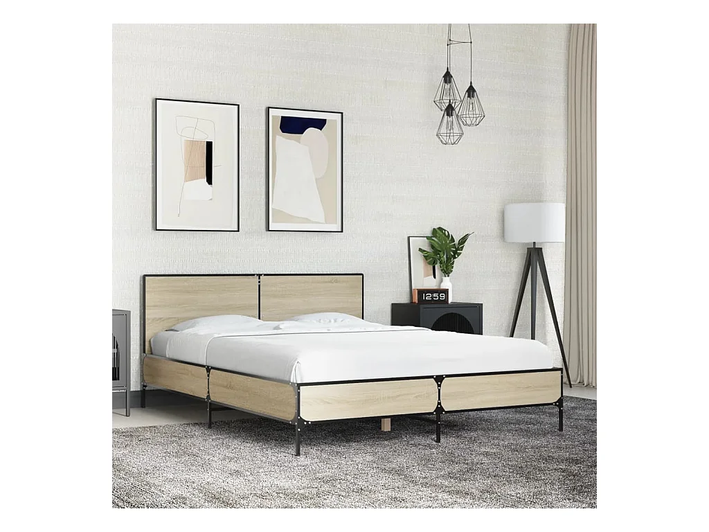 Lit double chêne sonoma 140x190 cm bois d'ingénierie et métal FR67558