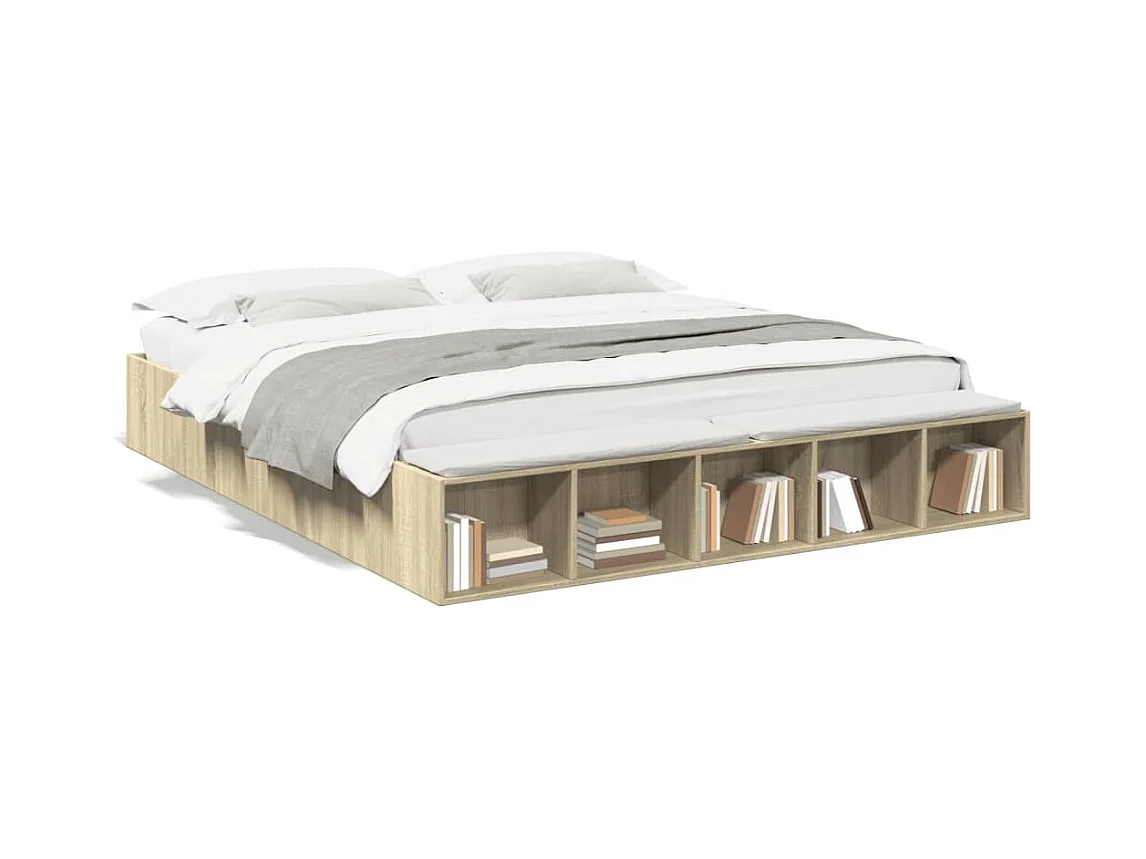 Lit double chêne sonoma 200x200 cm bois d'ingénierie FR77715