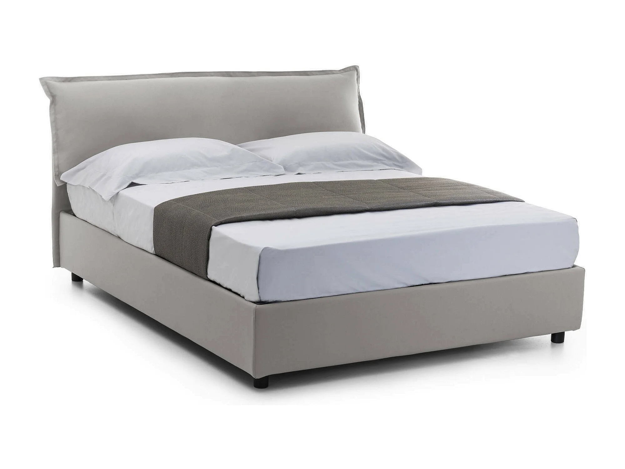 Lit double Clio, Lit coffre déhoussable avec tête de lit rembourrée et cadre de lit coffre, 100% Made in Italy, adapté pour matelas 160x190 cm, Gris