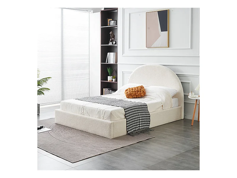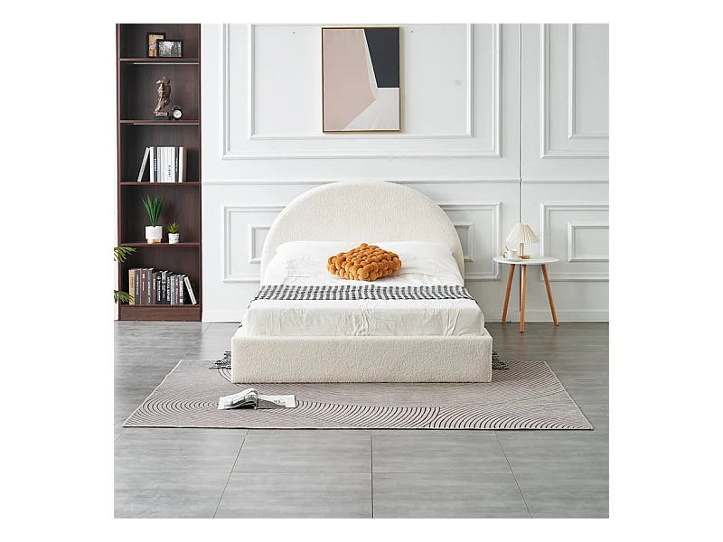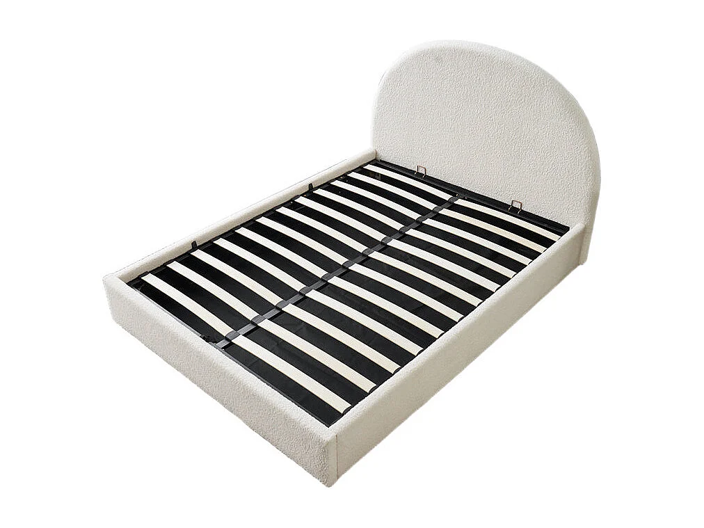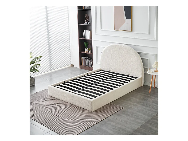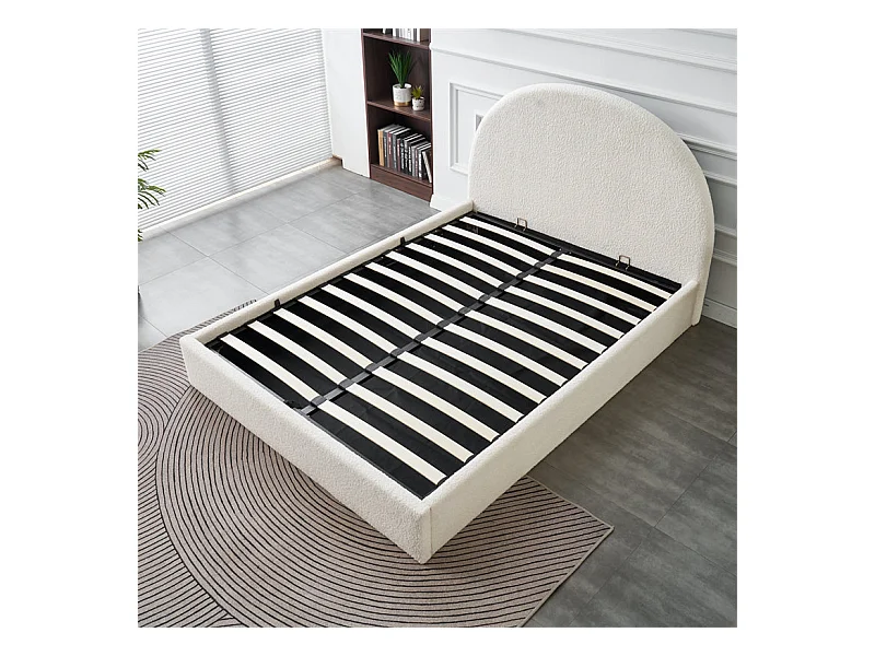 Lit Double Coffre VALENTINA – 180x200 cm – Tissu Doudou Blanc – Avec Grand Rangement
