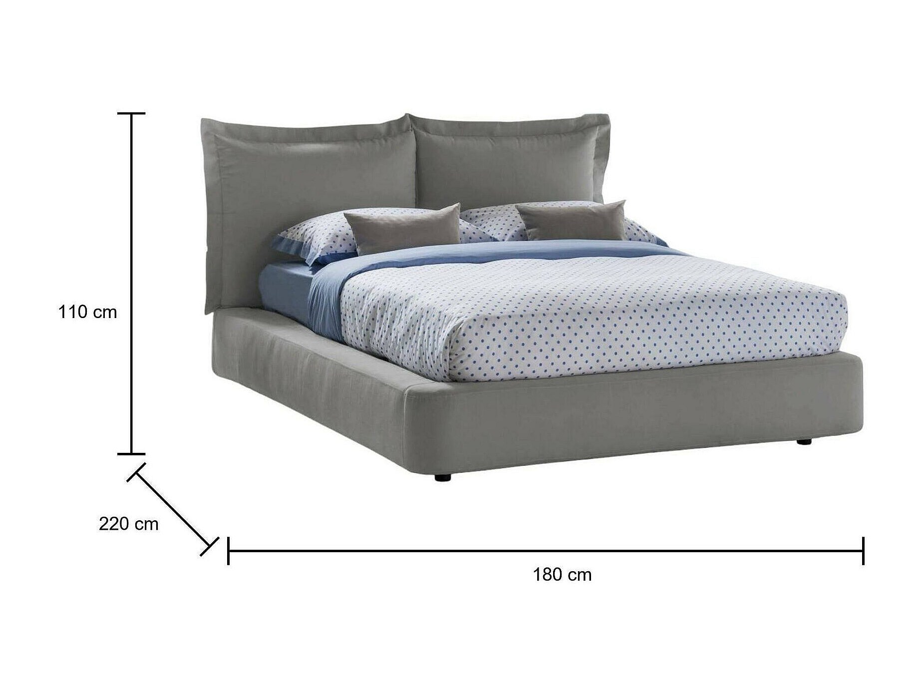 Lit double Cornelia, Lit coffre avec revêtement en tissu, 100% Made in Italy, Ouverture frontale, adapté pour matelas 160x190 cm, Gris