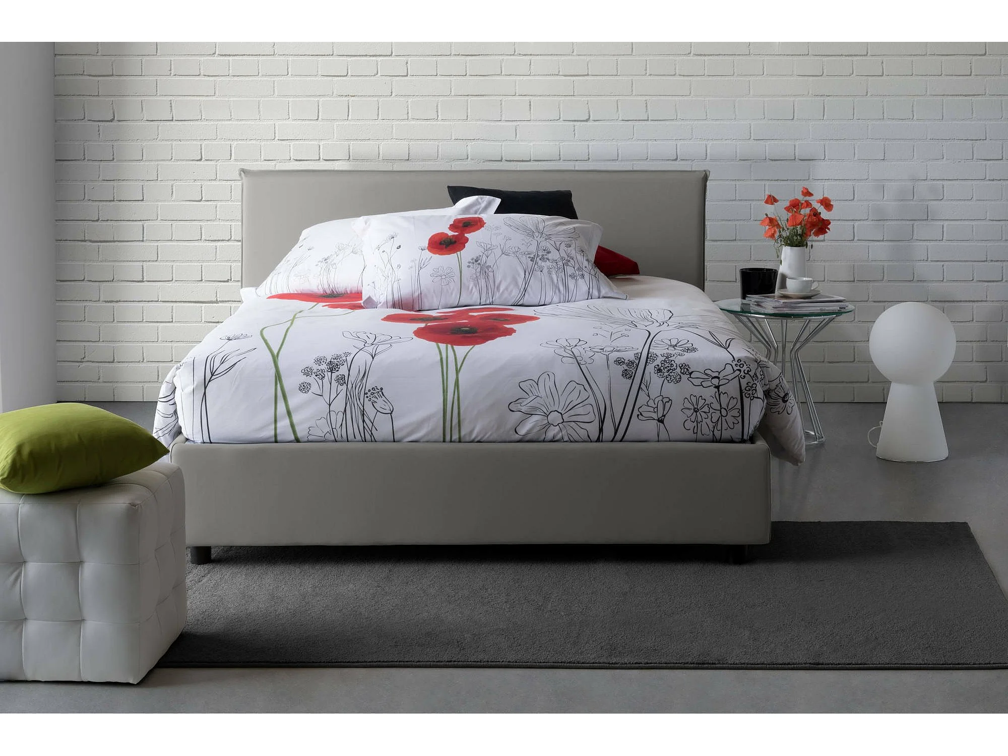 Lit double Dangel, Lit coffre avec revêtement en tissu, 100% Made in Italy, Ouverture frontale, adapté pour matelas 160x200 cm, Gris