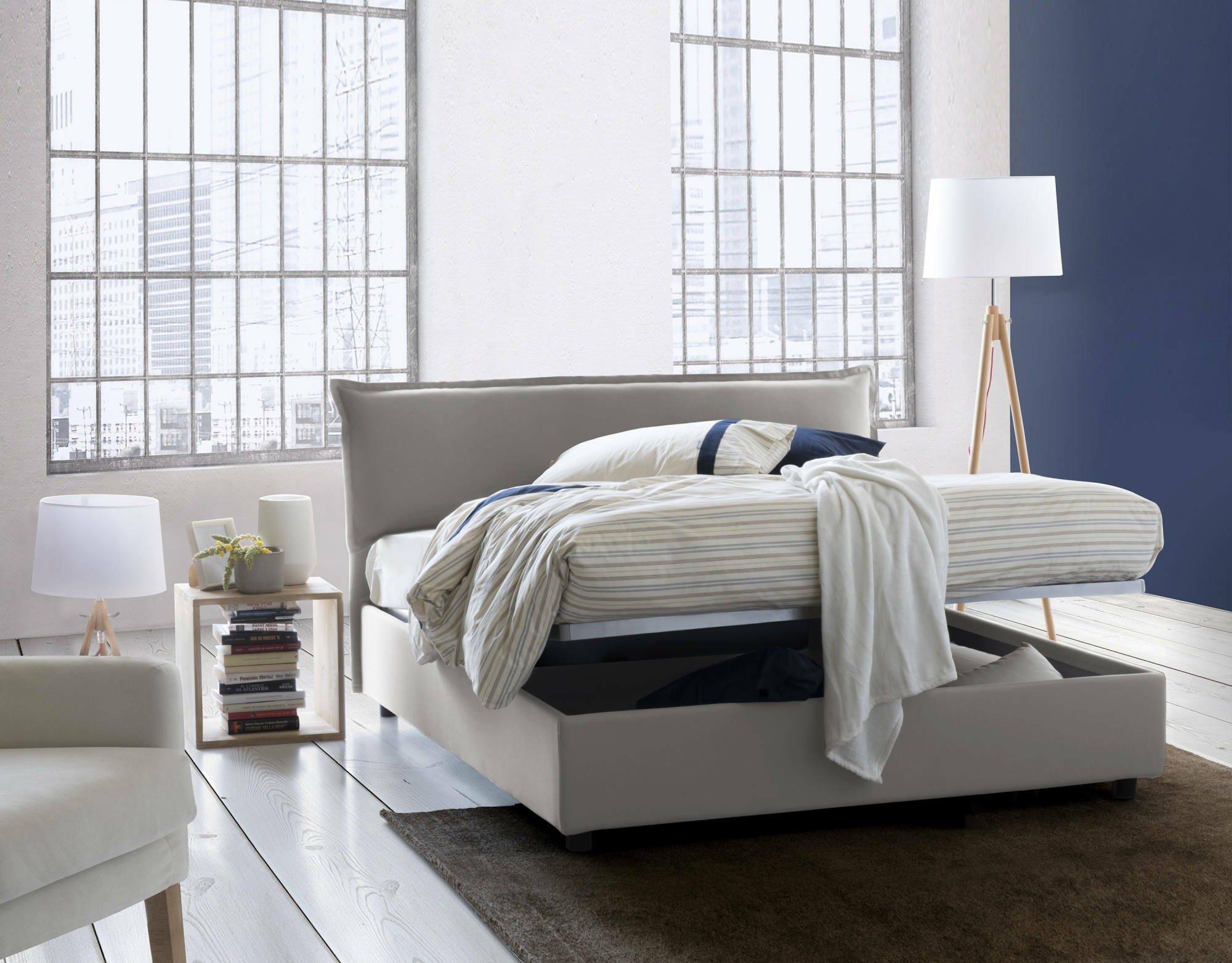 Lit double Dbiand, Lit coffre déhoussable avec tête de lit rembourrée et cadre de lit coffre, 100% Made in Italy, adapté pour matelas 160x200 cm, Gris