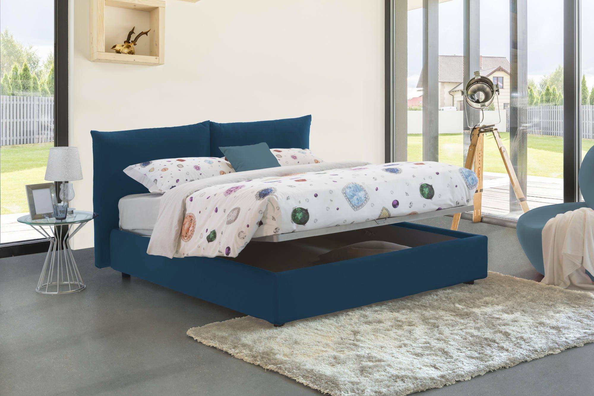 Lit double Ddestr, Lit coffre avec revêtement en tissu, 100% Made in Italy, Ouverture frontale, adapté pour matelas 160x200 cm, Bleu