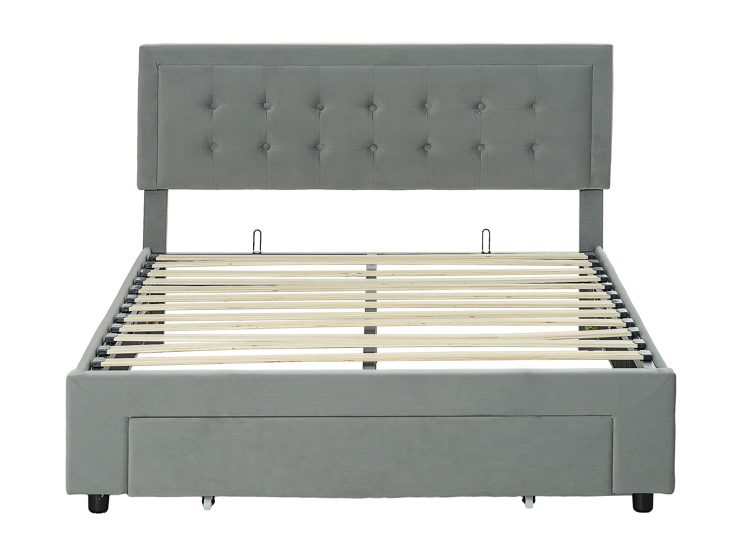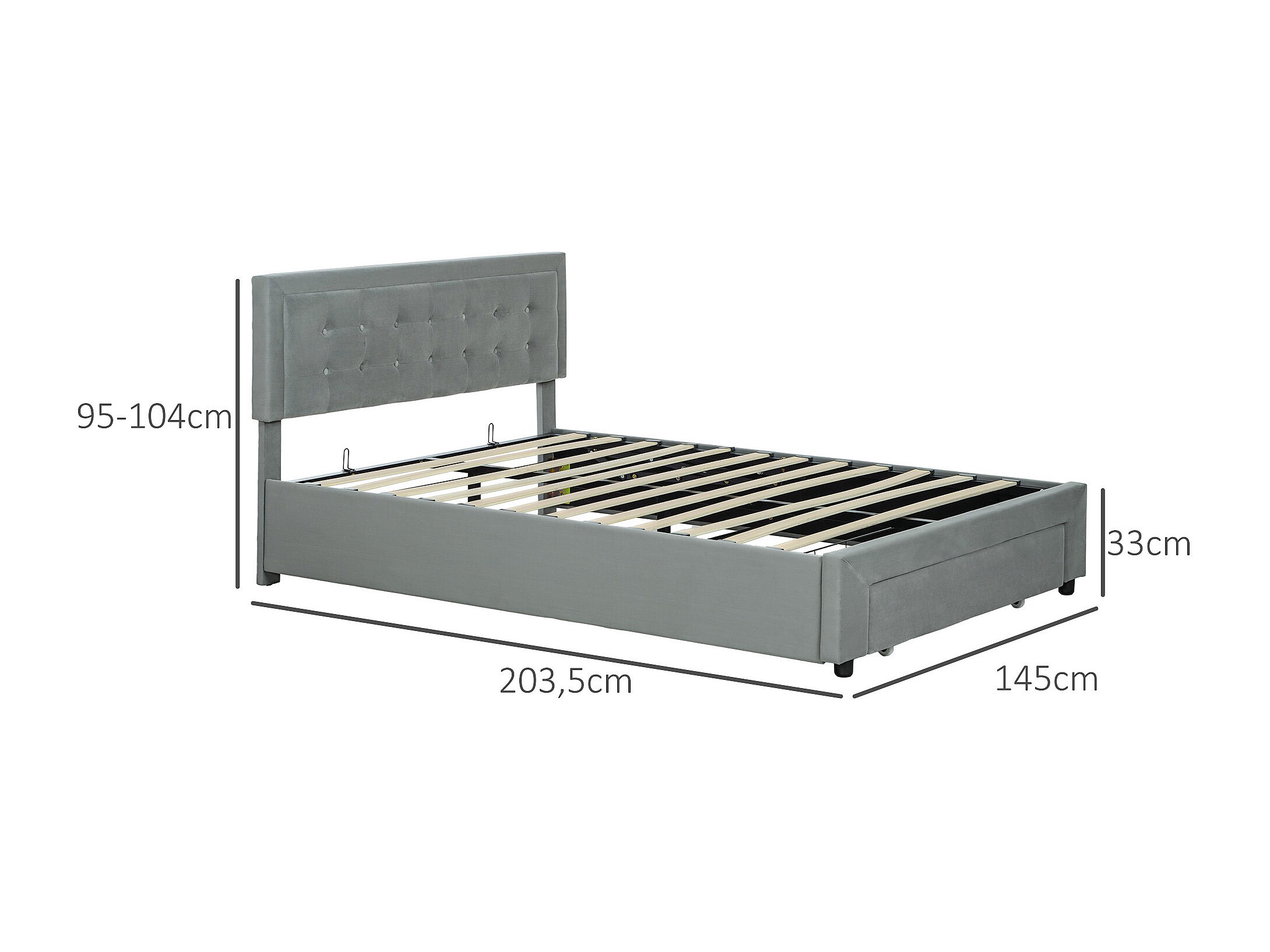 Lit double coffre - tête de lit, pied de lit et sommier - compatible matelas 140 x 200 cm - velours gris