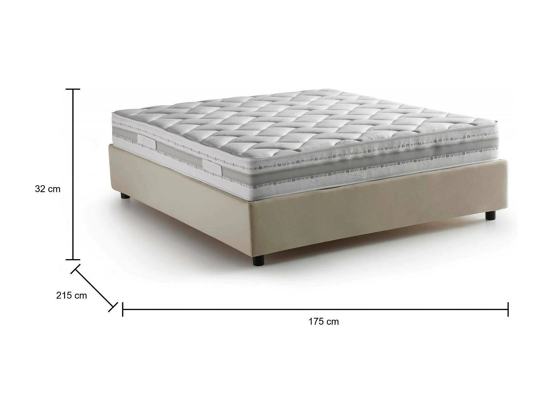 Lit double Deusep, Lit coffre avec revêtement en tissu, 100% Made in Italy, Ouverture frontale, avec matelas 160x200 cm inclus, Beige