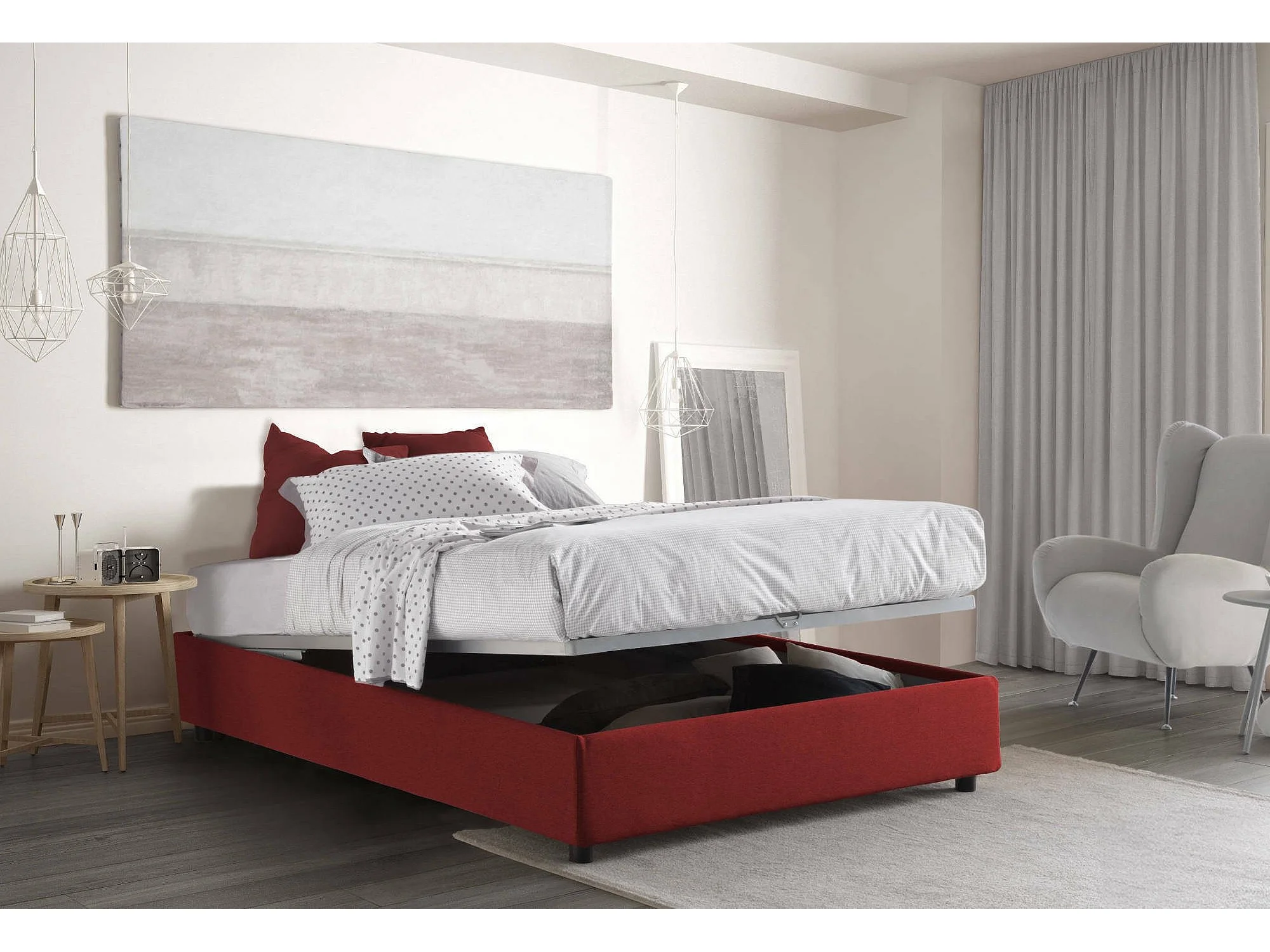Lit double Deusep, Lit coffre avec revêtement en tissu, 100% Made in Italy, Ouverture frontale, avec matelas 160x200 cm inclus, Rouge