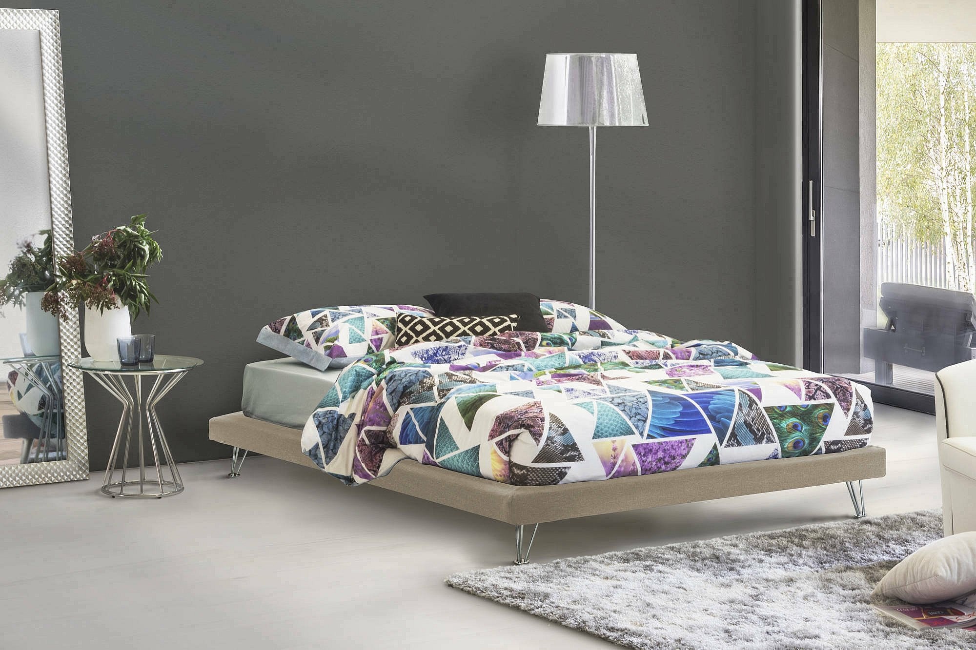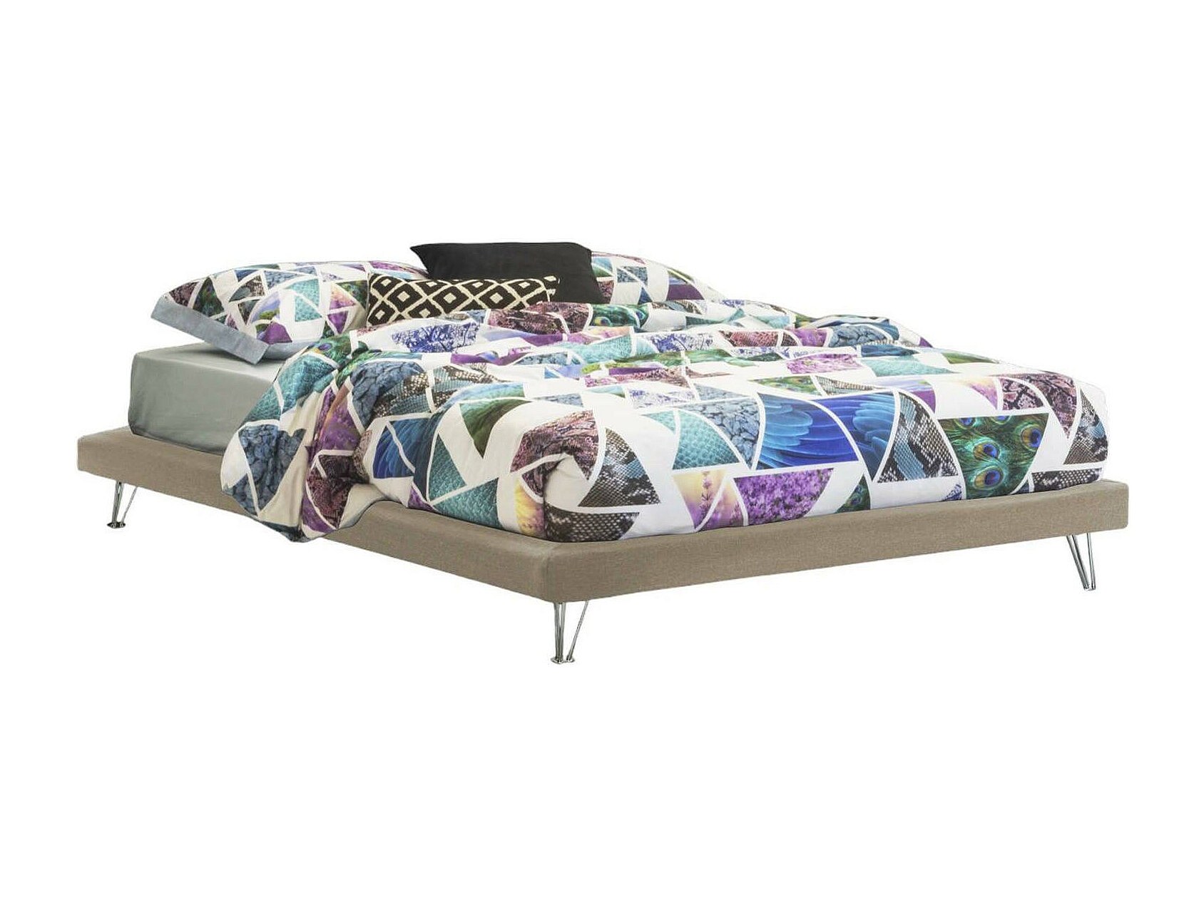 Lit double Dferron, Lit fixe en tissu avec pieds, 100% Made in Italy, adapté pour matelas 160x190 cm, Beige
