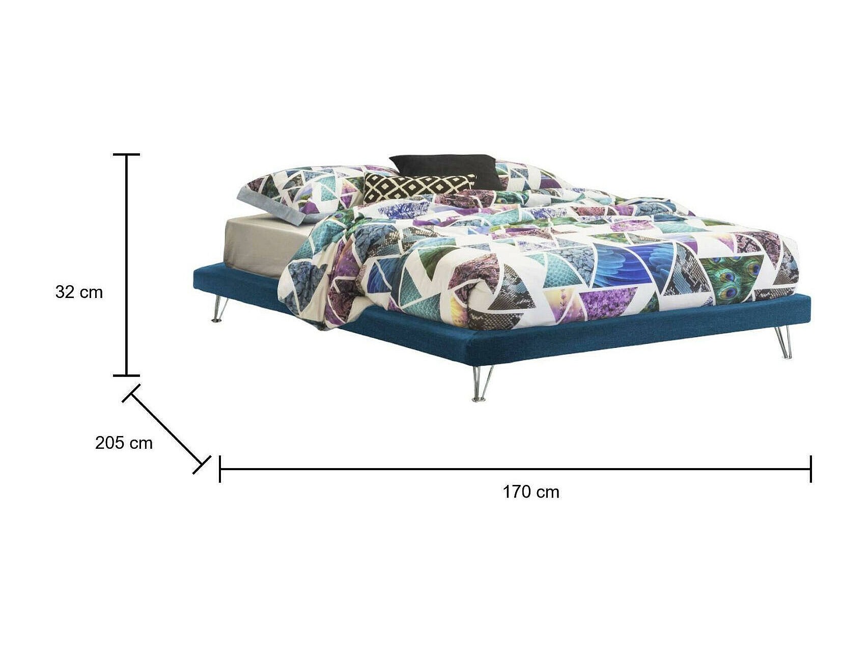 Lit double Dferron, Lit fixe en tissu avec pieds, 100% Made in Italy, adapté pour matelas 160x190 cm, Bleu