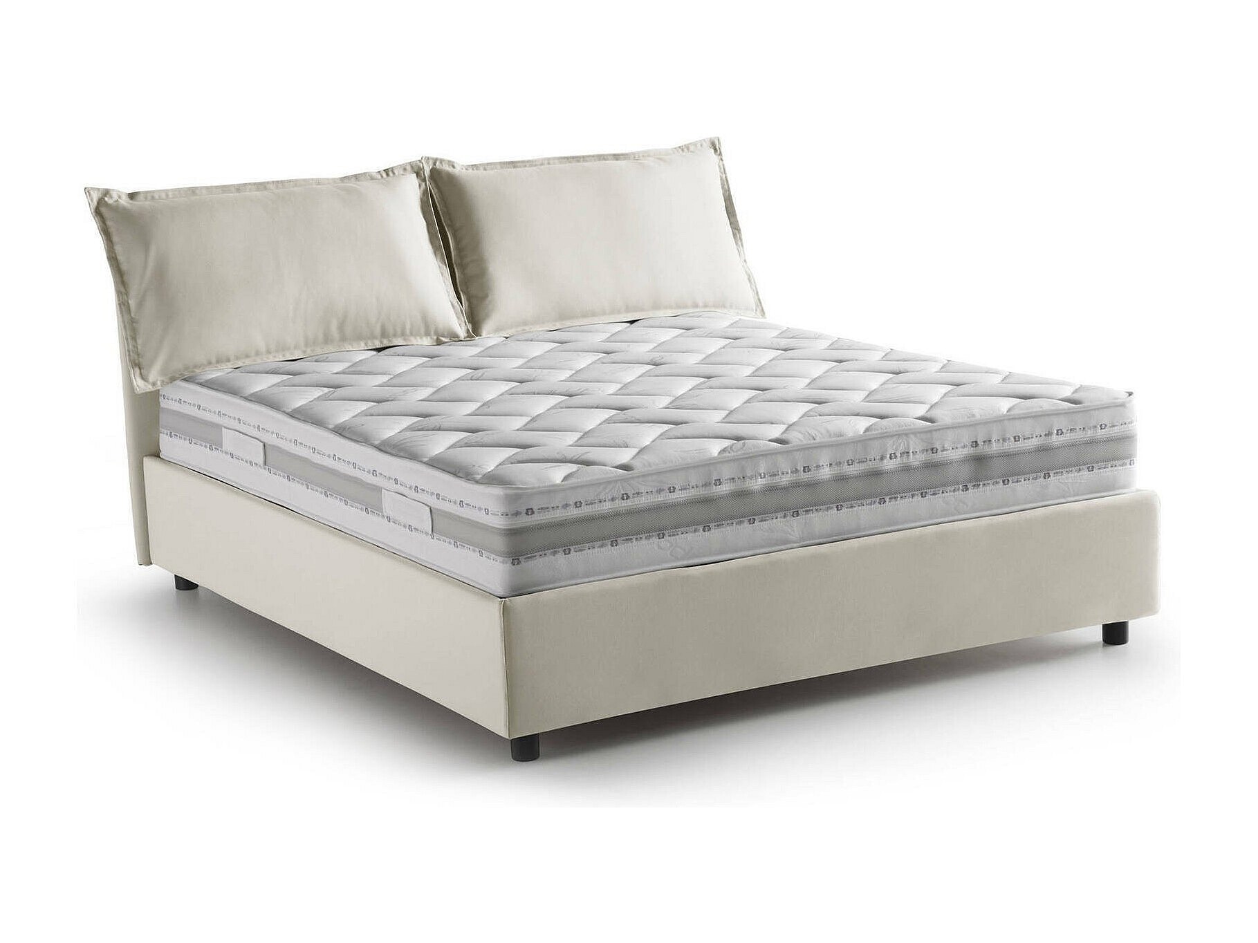 Lit double Dmelott, Lit coffre avec revêtement en tissu, 100% Made in Italy, Ouverture frontale, avec matelas 140x190 cm inclus, Beige