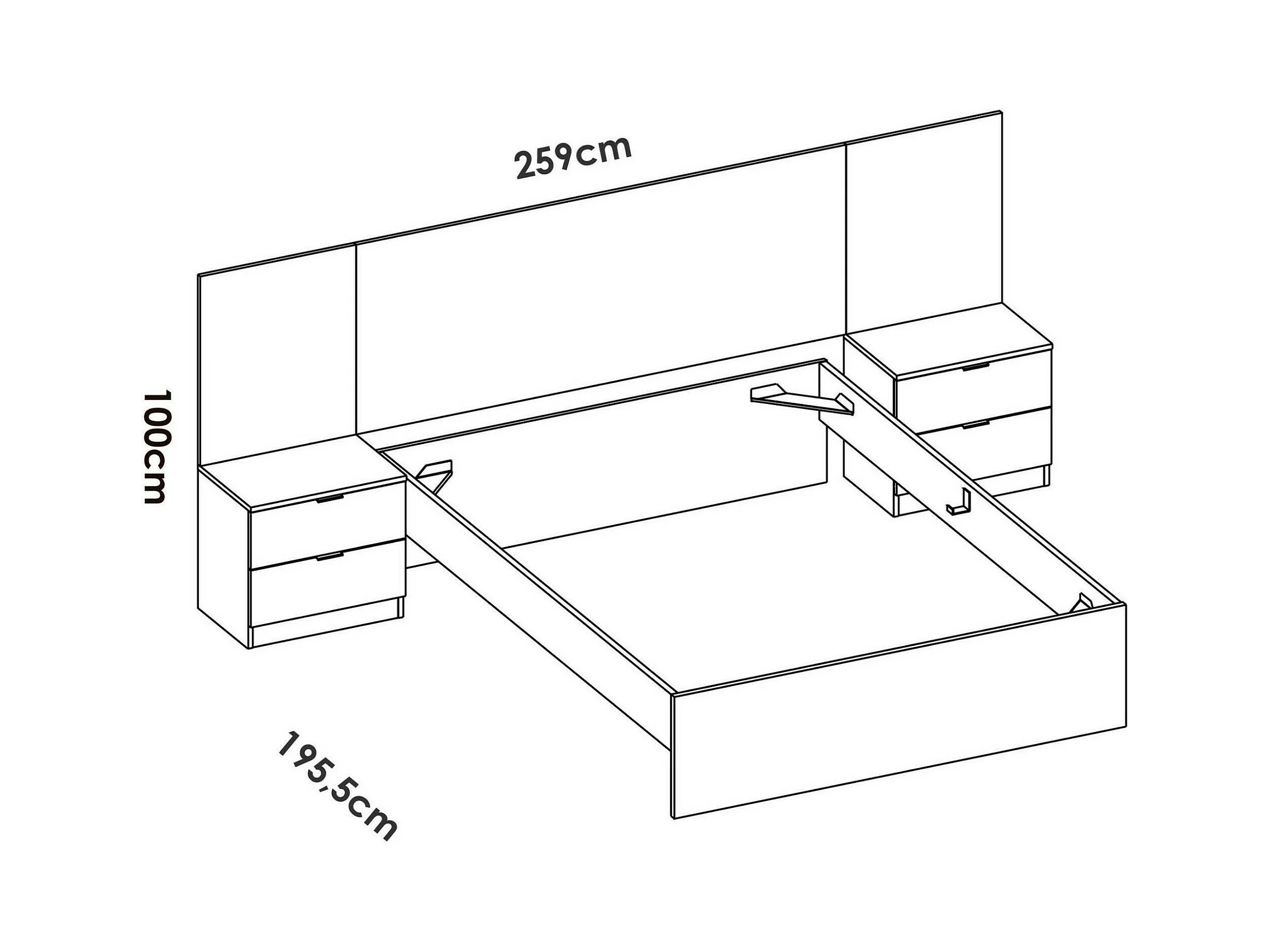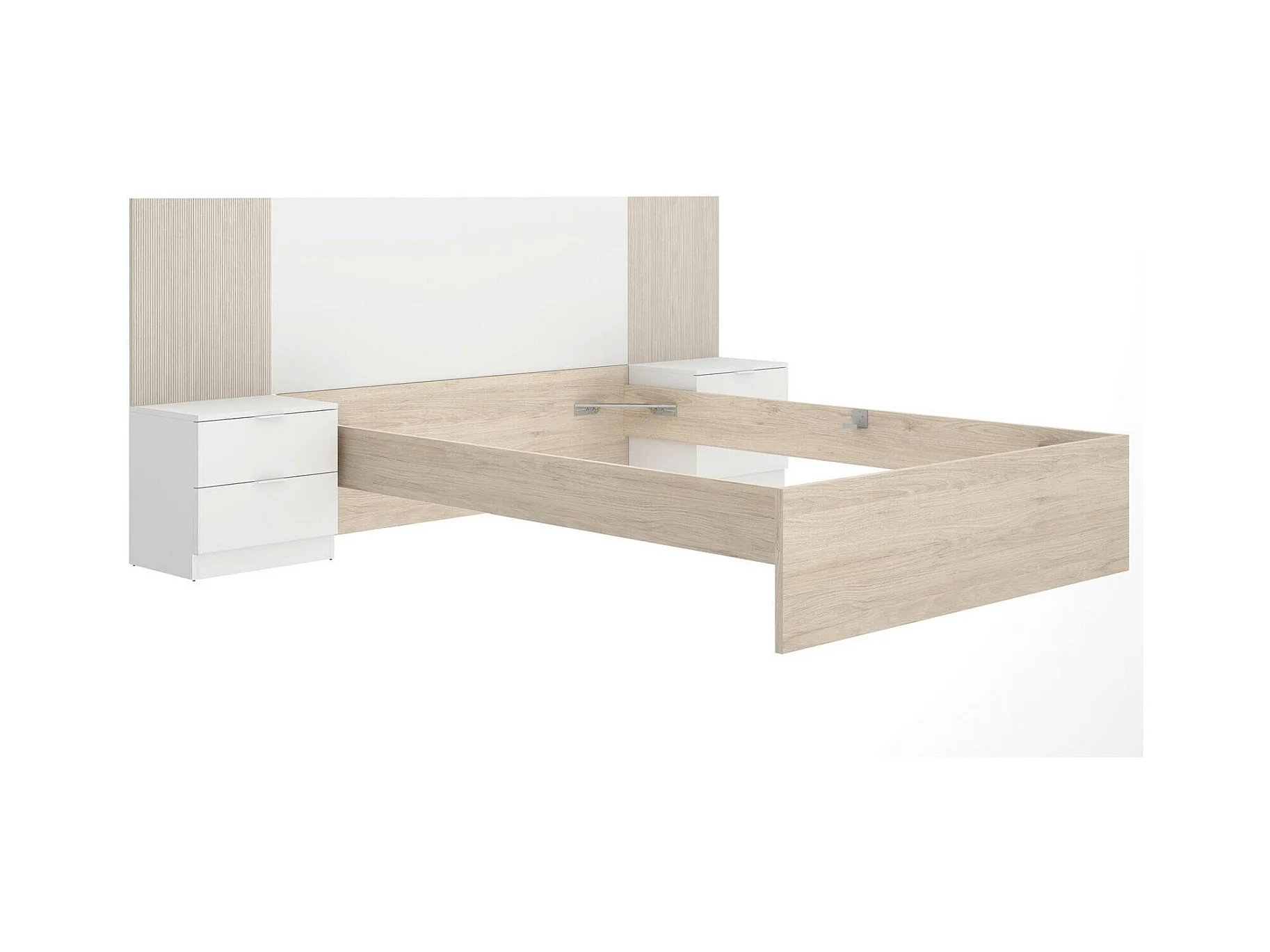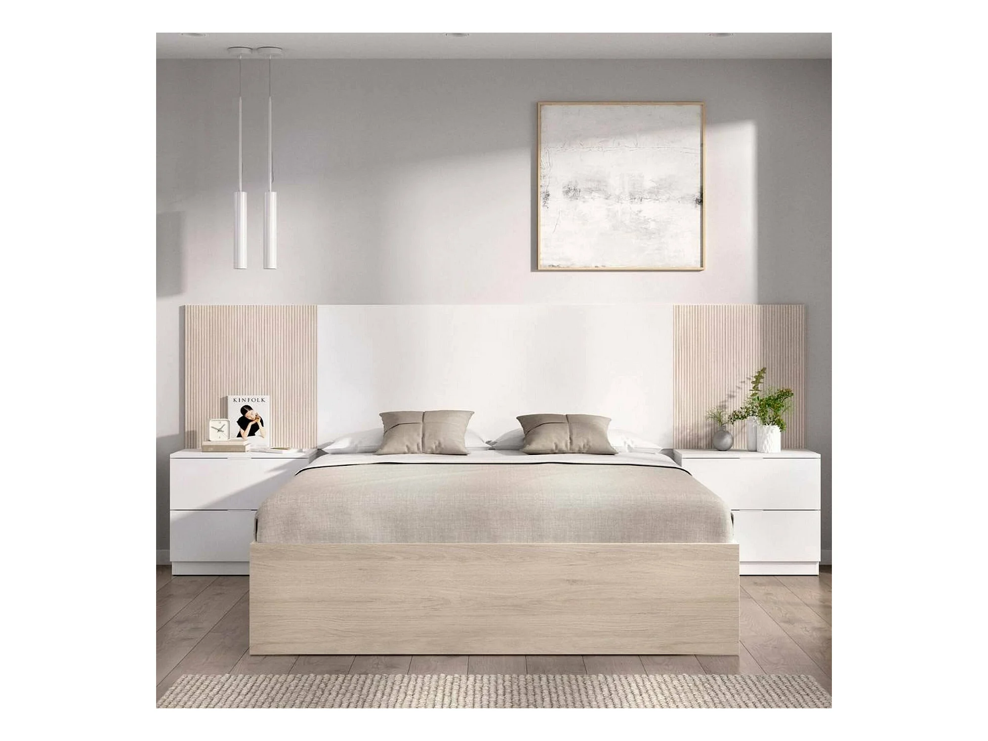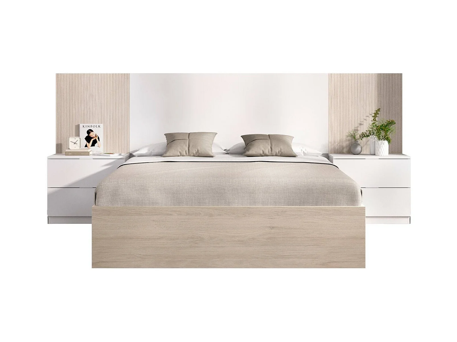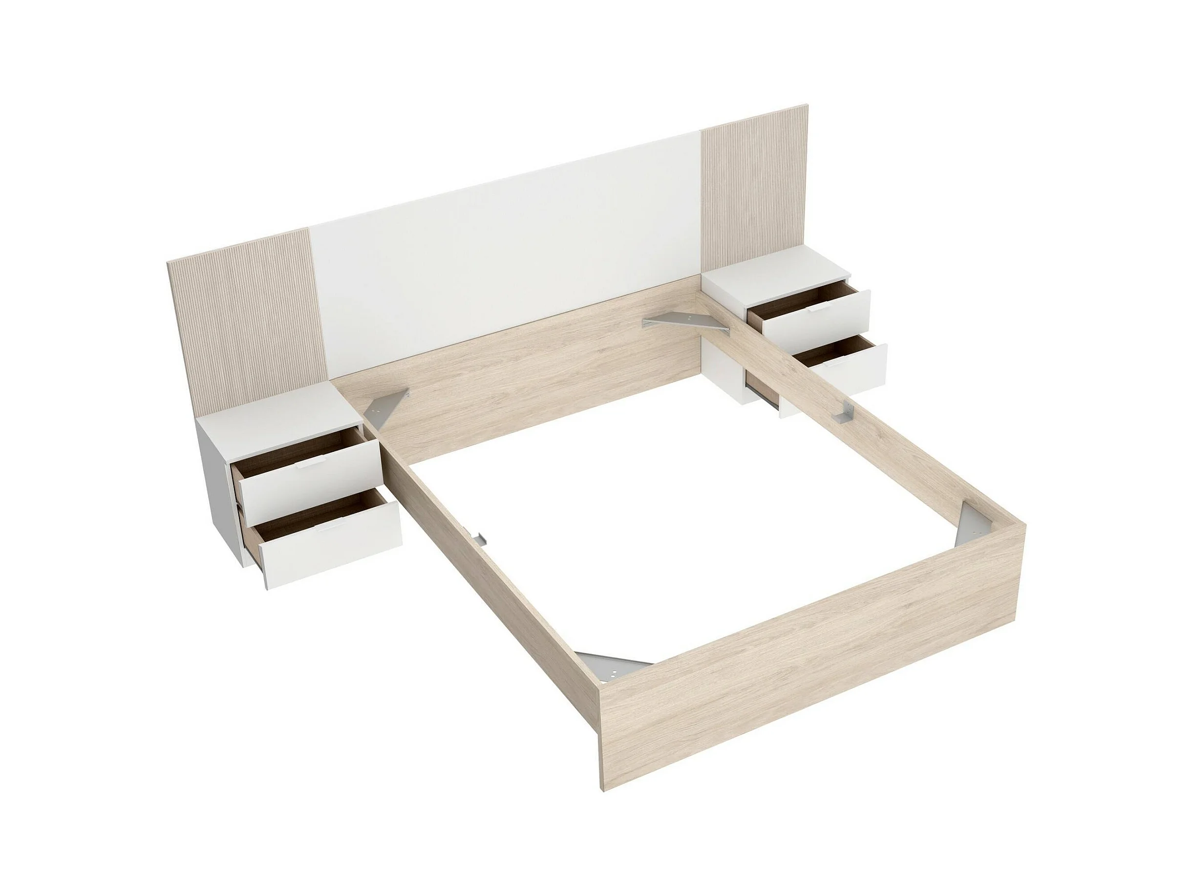 Lit double Dpendrit, Sommier pour chambre, Literie par chambre, Support de matelas, 267x205 h106 cm, Blanc et Chêne clair