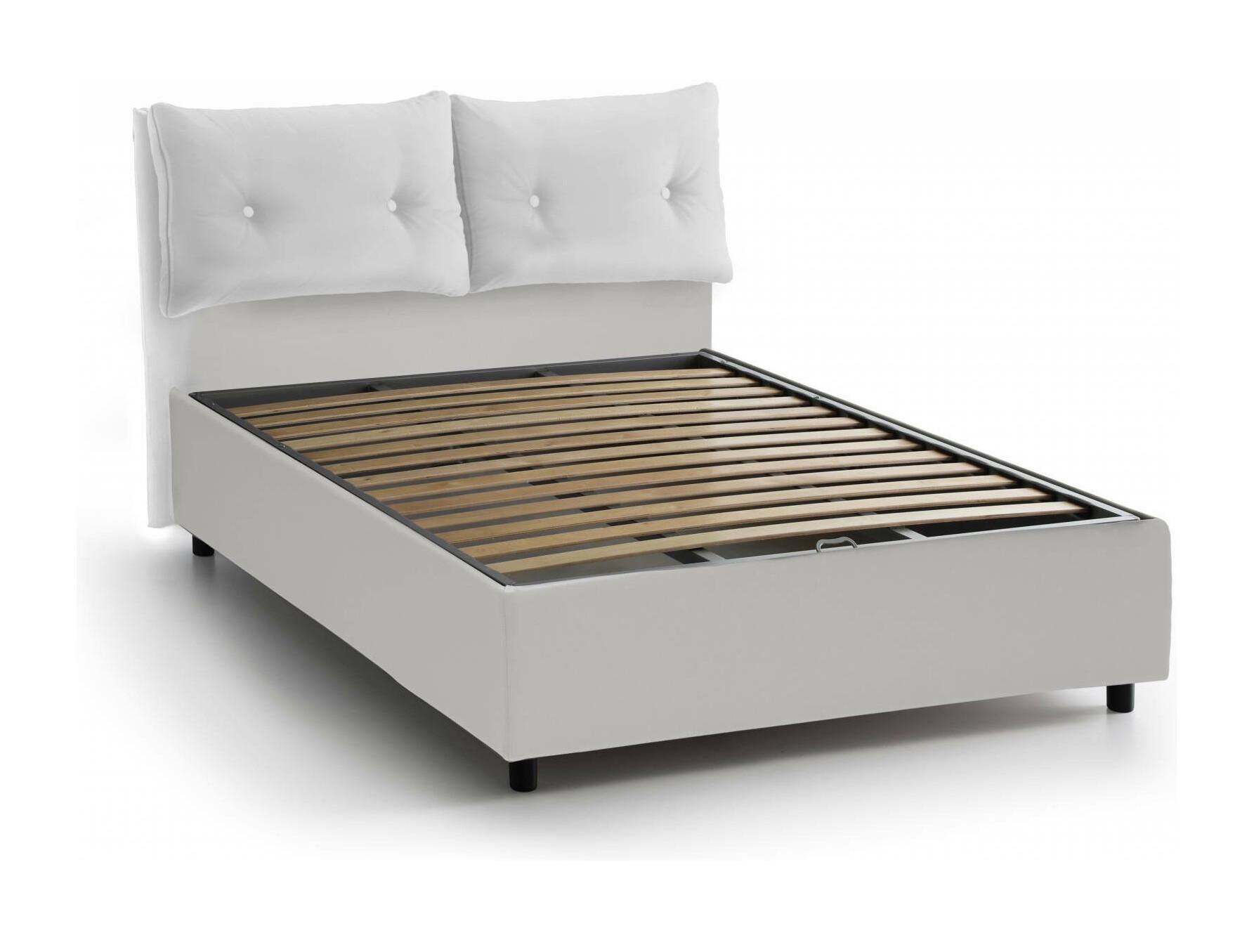 Lit double Elisabetta, Lit coffre avec revêtement en tissu, 100% Made in Italy, Ouverture frontale, adapté pour matelas 160x190 cm, Blanc