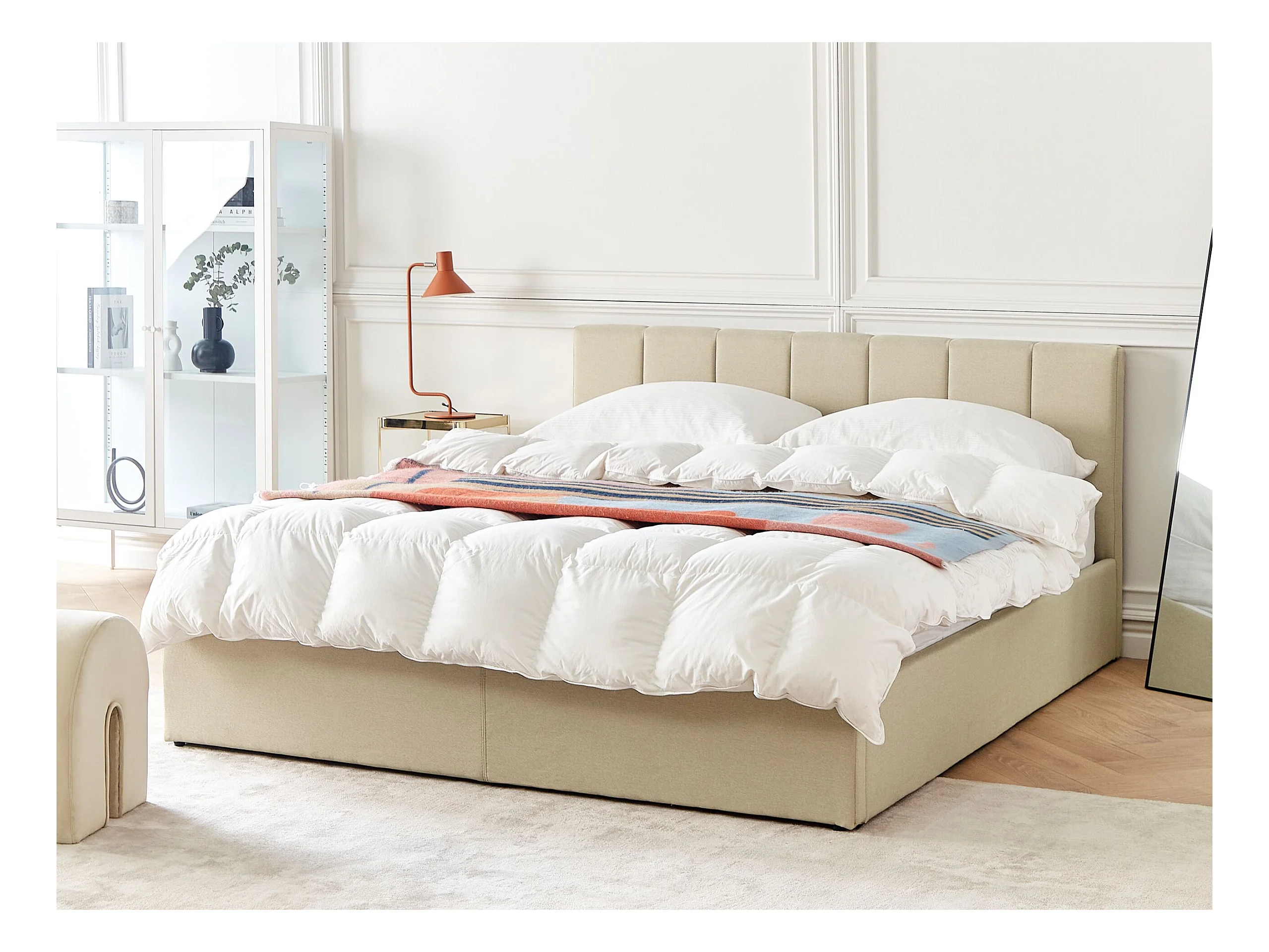 Lit ottoman Tissu DREUX 160 x 200 cm Beige