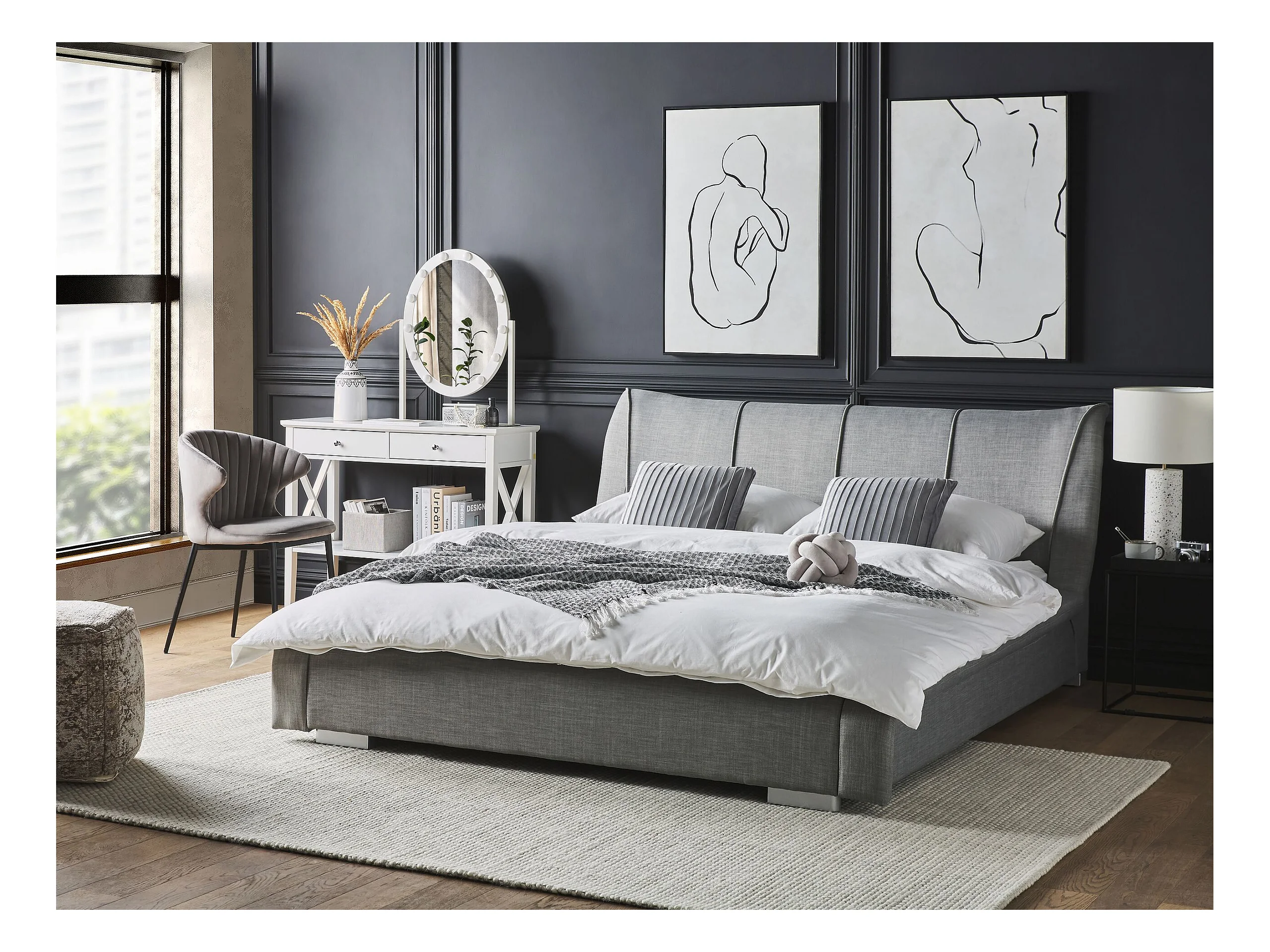 Lit avec sommier Tissu NANTES 140 x 200 cm Gris clair
