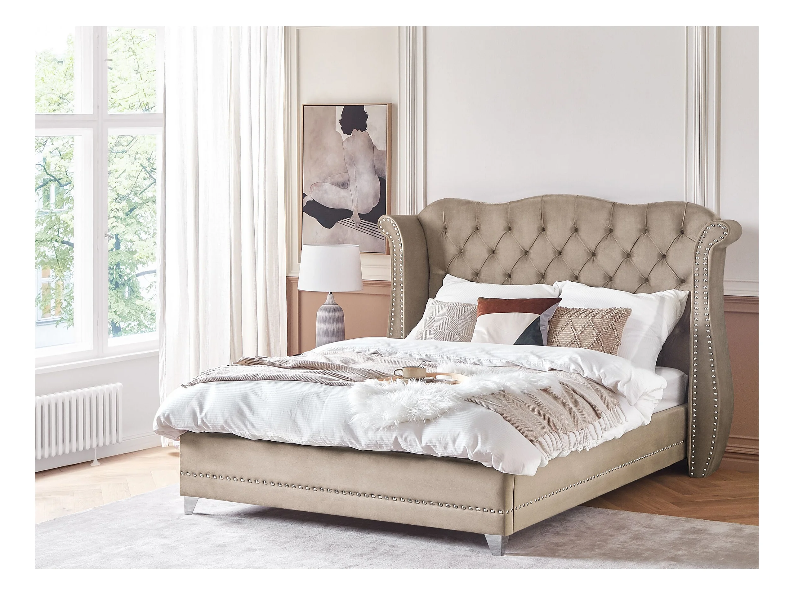 Lit avec sommier Velours AYETTE 180 x 200 cm Taupe