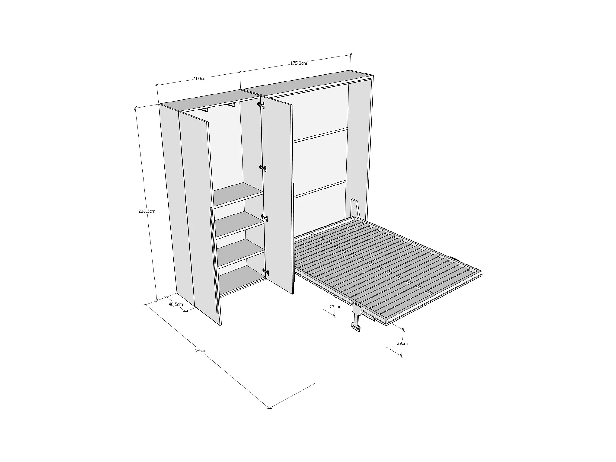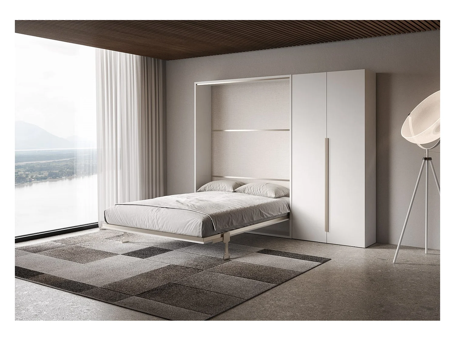 Lit double escamotable vertical Versia 160 avec armoire 2 portes droite en Blanc