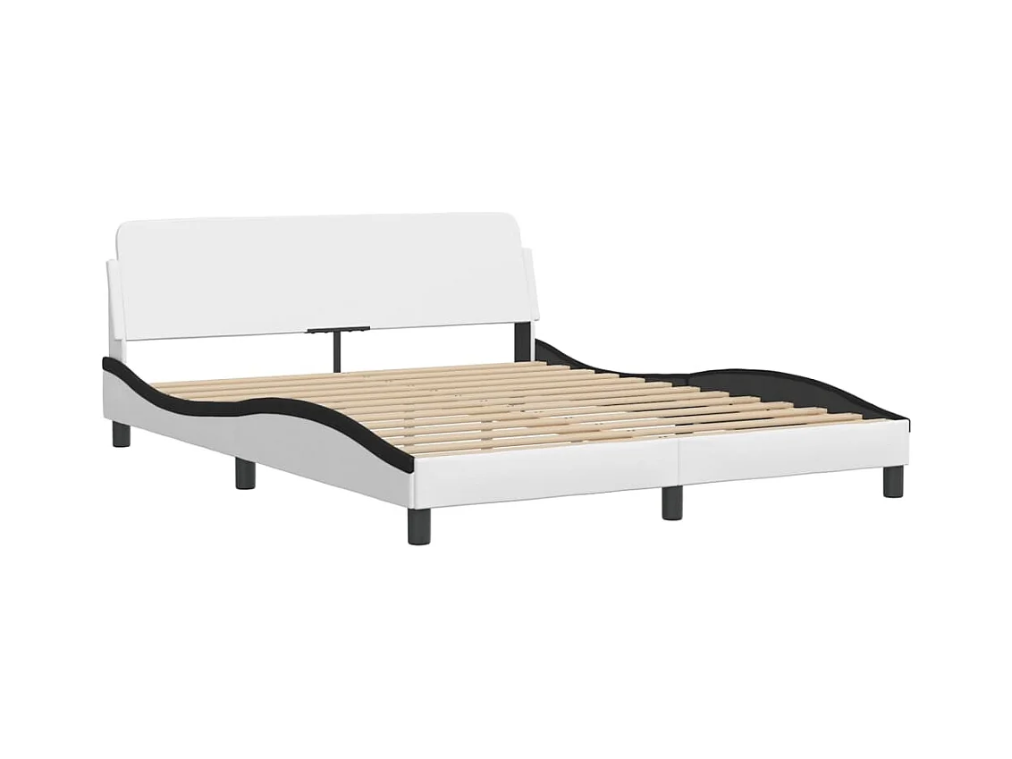 Lit double et tête de lit blanc et noir 160x200 cm similicuir FR22187