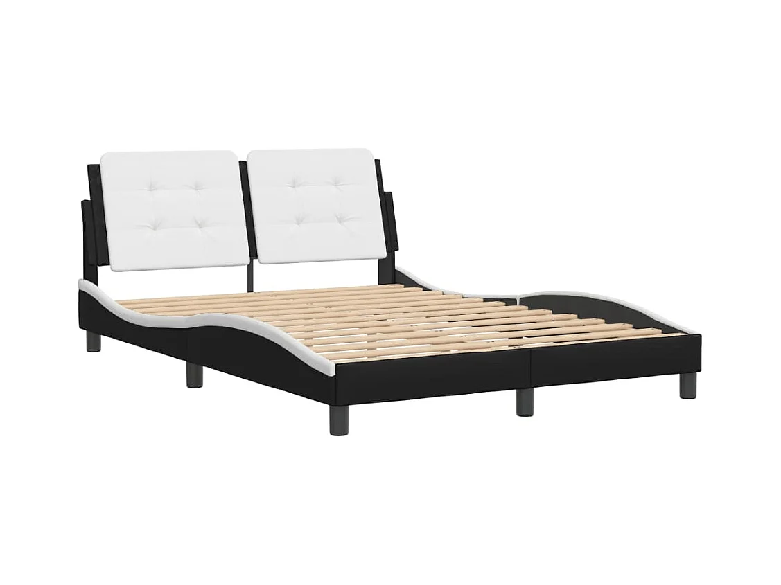 Lit double et tête de lit noir et blanc 120x200 cm similicuir FR64558
