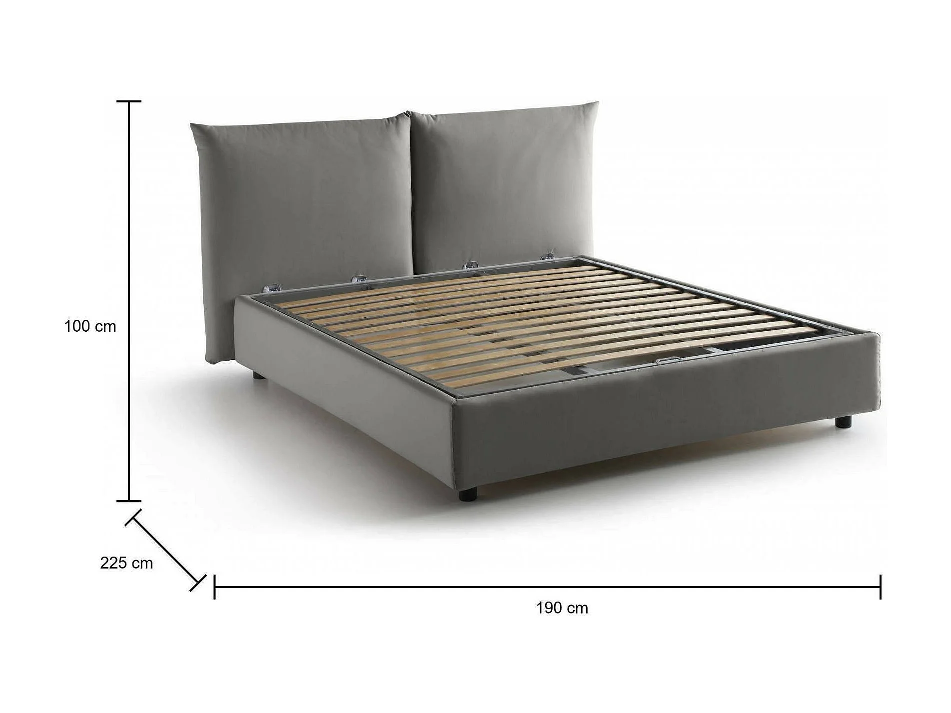 Lit double Gabriella, Lit coffre avec revêtement en tissu, 100% Made in Italy, Ouverture frontale, adapté pour matelas 160x200 cm, Gris